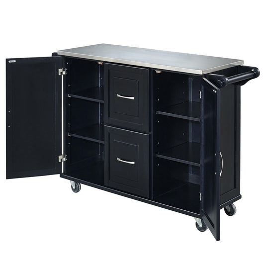 Blanche - 36" Kitchen Cart With Stainless Steel Top - Black