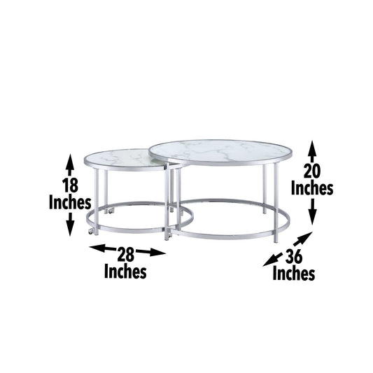 Corvus - 3 Piece Table Set - White Marble Hexagon