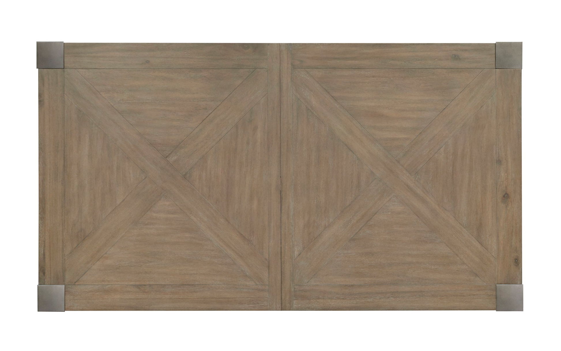 Industrial style gets a light and airy vibe with the soft organic color palette of the Ainsley Dining Collection and featuring a tactile Cerused Khaki finish with a subtle gray wash on exotic and elegant Acacia Solids and Veneers. Adding character to this collection are exquisite book-matched veneers in an X-motif on case fronts and metal ferrules on the base of the round dining table and metal brackets on the edges of the rectangular Parson’s leg Dining Table and the Parson’s Leg Bench and all in an Industrial Bronze finish. The Display Cabinet combines the book-matched pattern at the bottom of the two doors with glass on the top of each door. Chair choices in the collection include a modified Windsor chair with an upholstered seat and upholstered host and side chairs. Create an uplifting setting in soothing natural colors and textures for memorable meals with the Ainsley Collection.