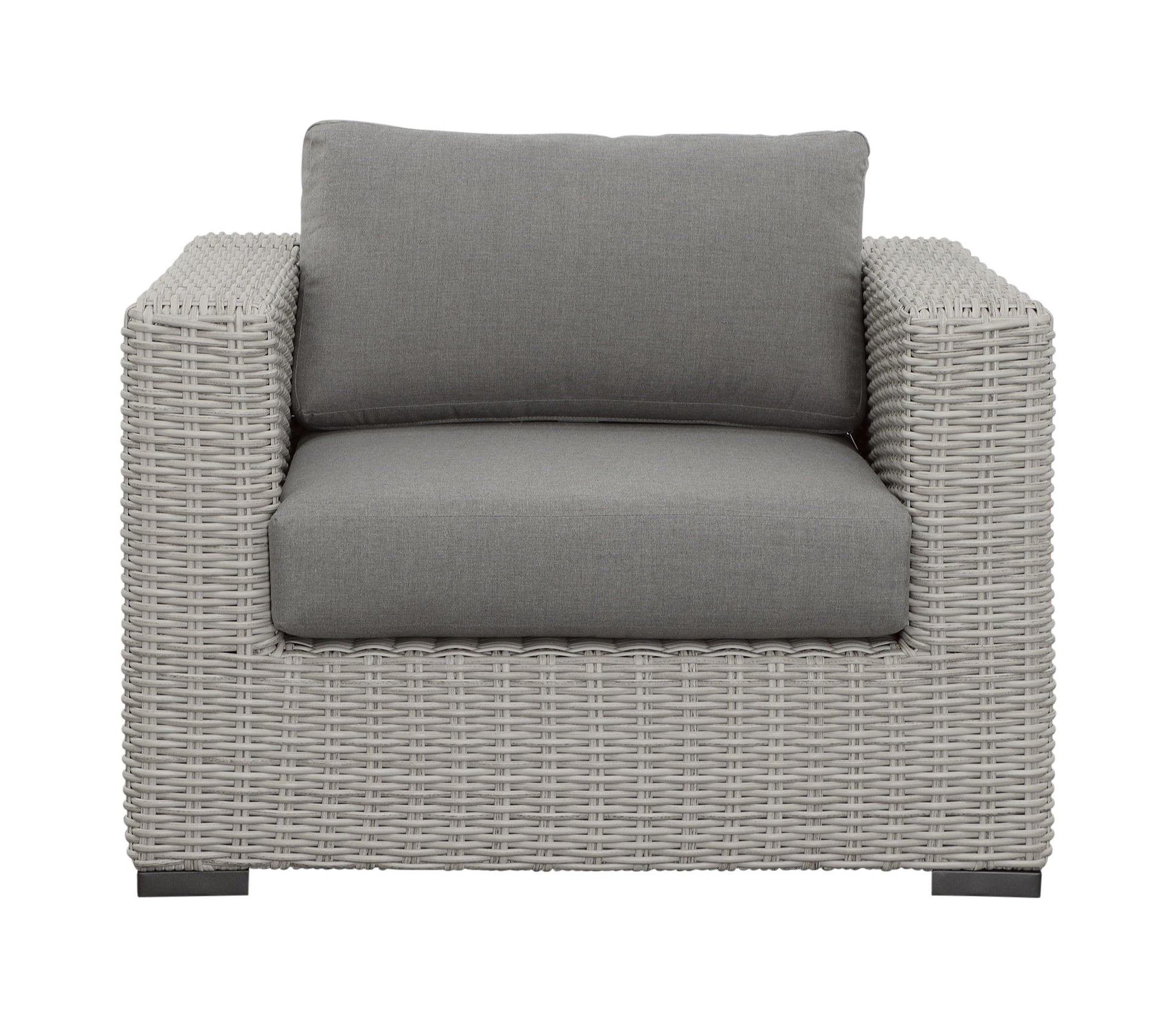 Indulge in the ultimate relaxation experience with the Blakley Outdoor Lounge Chair. Crafted with high-quality HDPE resin half round wicker and solution-dryer acrylic cover, this lounge chair features a light gray resin and dark gray covers for a chic and neutral outdoor look. Sink into the ultra-deep cushions and let your worries melt away as you bask in the sun or enjoy a good book. The removable cushions make it easy to store your chair away from the elements when needed, ensuring your investment lasts for years to come. Measuring at a generous size, this lounge chair offers plenty of space for you to unwind and enjoy the outdoors. Whether you're lounging solo or sharing with a special someone, the Blakley Outdoor Lounge Chair provides the ultimate in comfort and style.