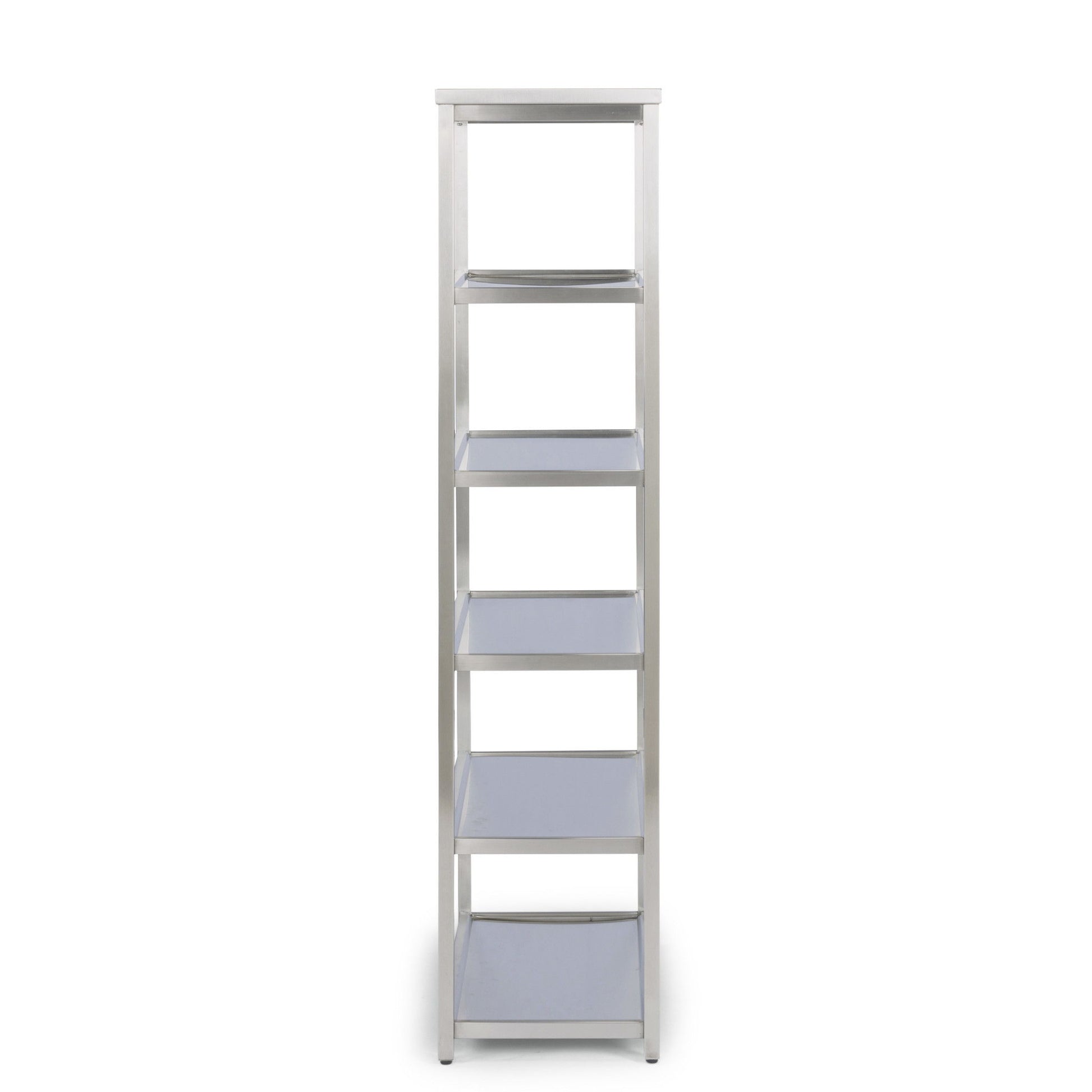 The sleek look of stainless steel is a smart choice. The Bold Other Six Tier Shelf by homestyles features durable, easy-to-clean stainless steel construction with a brushed satin finish. The shelf is rust-resistant and can be easily cleaned to eliminate germs. Features a tube frame with stainless sheet shelves, providing great storage and display in the bathroom, other rooms in the home, or garage. Finish and measurements may vary slightly. Assembly required.