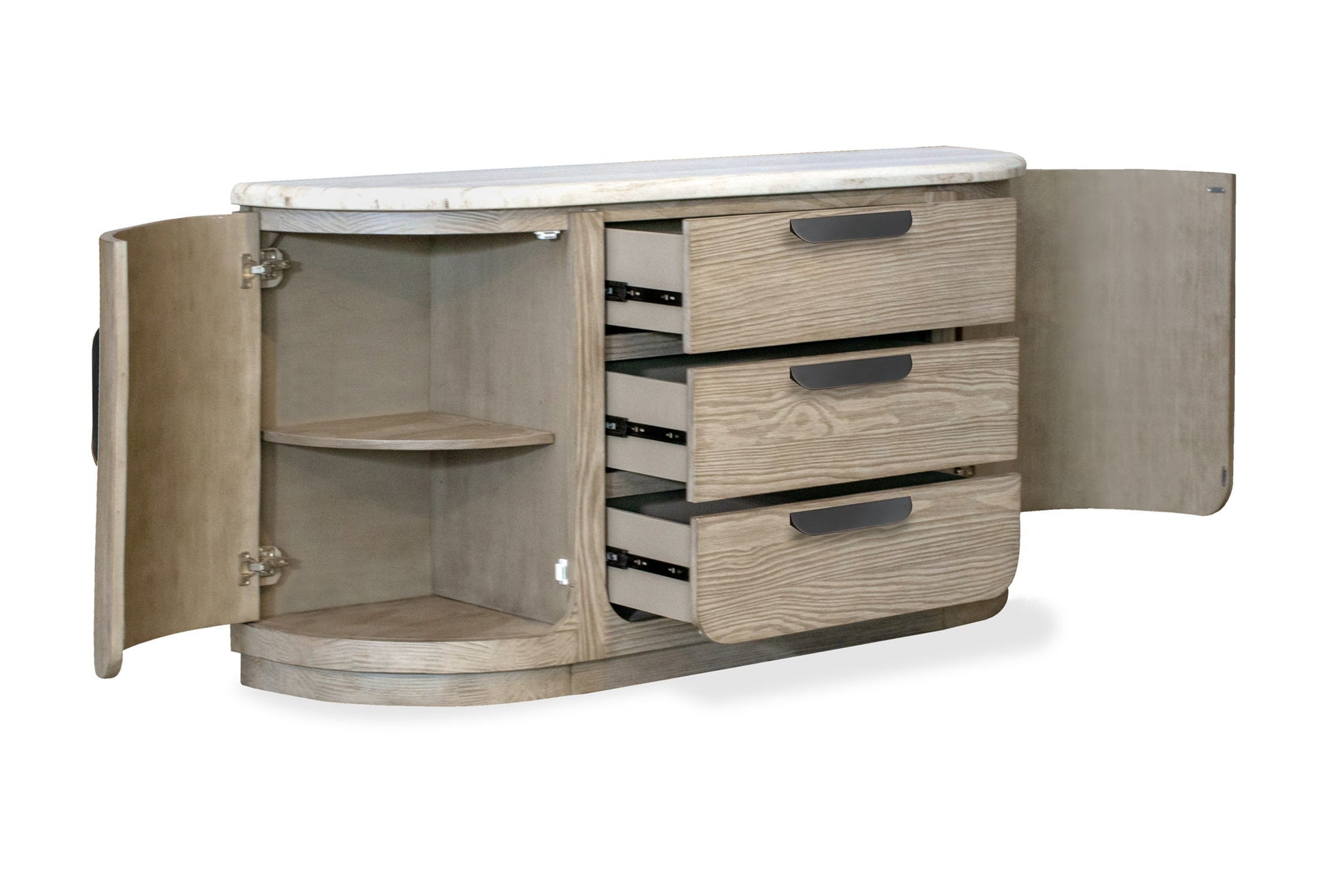 The Braelyn exemplifies a refined blend of Mid-Century Modern charm and relaxed modern aesthetics. This collection seamlessly integrates functionality and elegance and enhancing any living space with its thoughtful design elements. The Dorian Grey finish and complemented by Camino Opal fabric and imparts a sophisticated and sleek appearance. Ideal for contemporary and eclectic interiors and it introduces a touch of effortless elegance and comfort to your home. Crafted from premium random width pine solids and the Braelyn ensures enduring durability and timeless beauty and making it a distinguished addition to any decor.