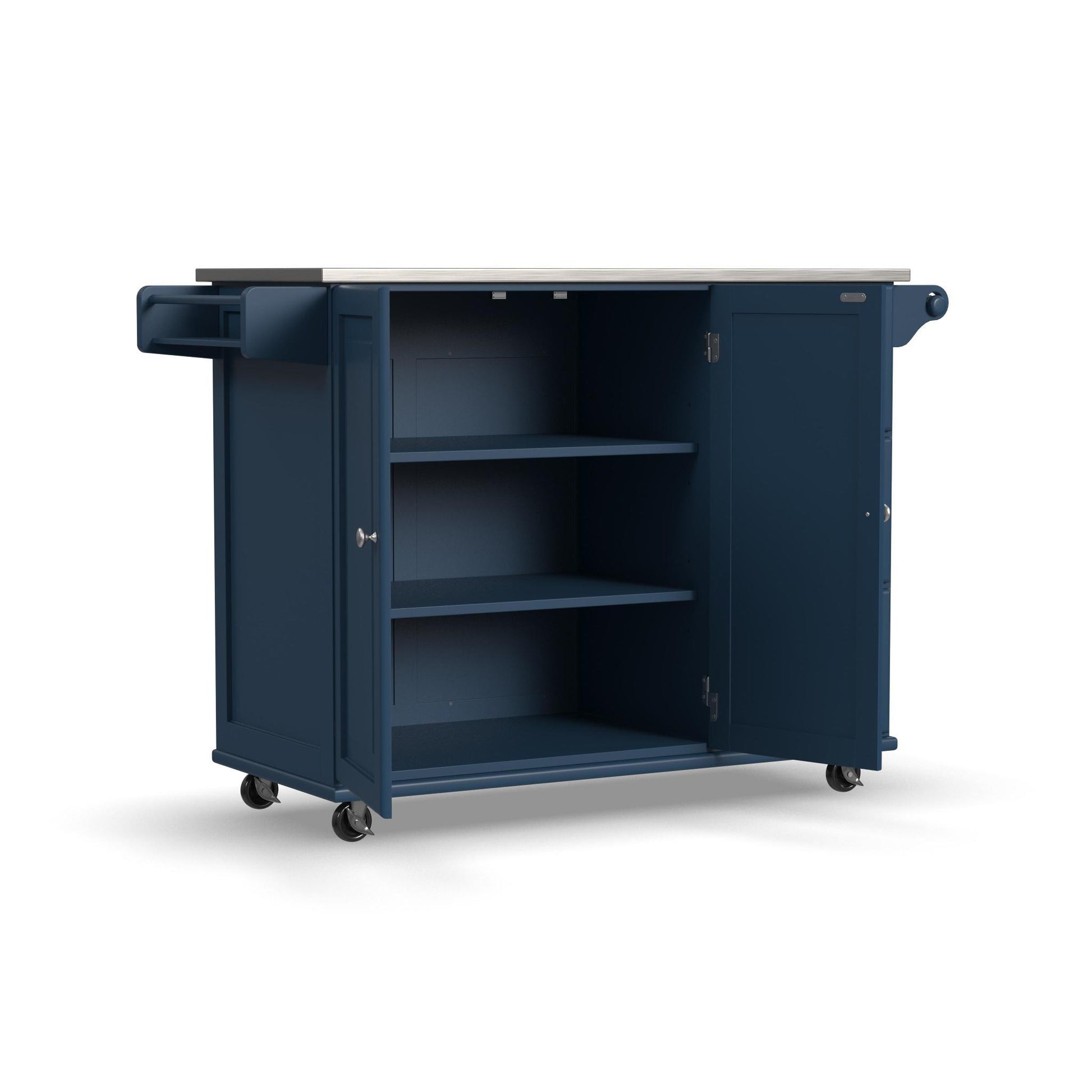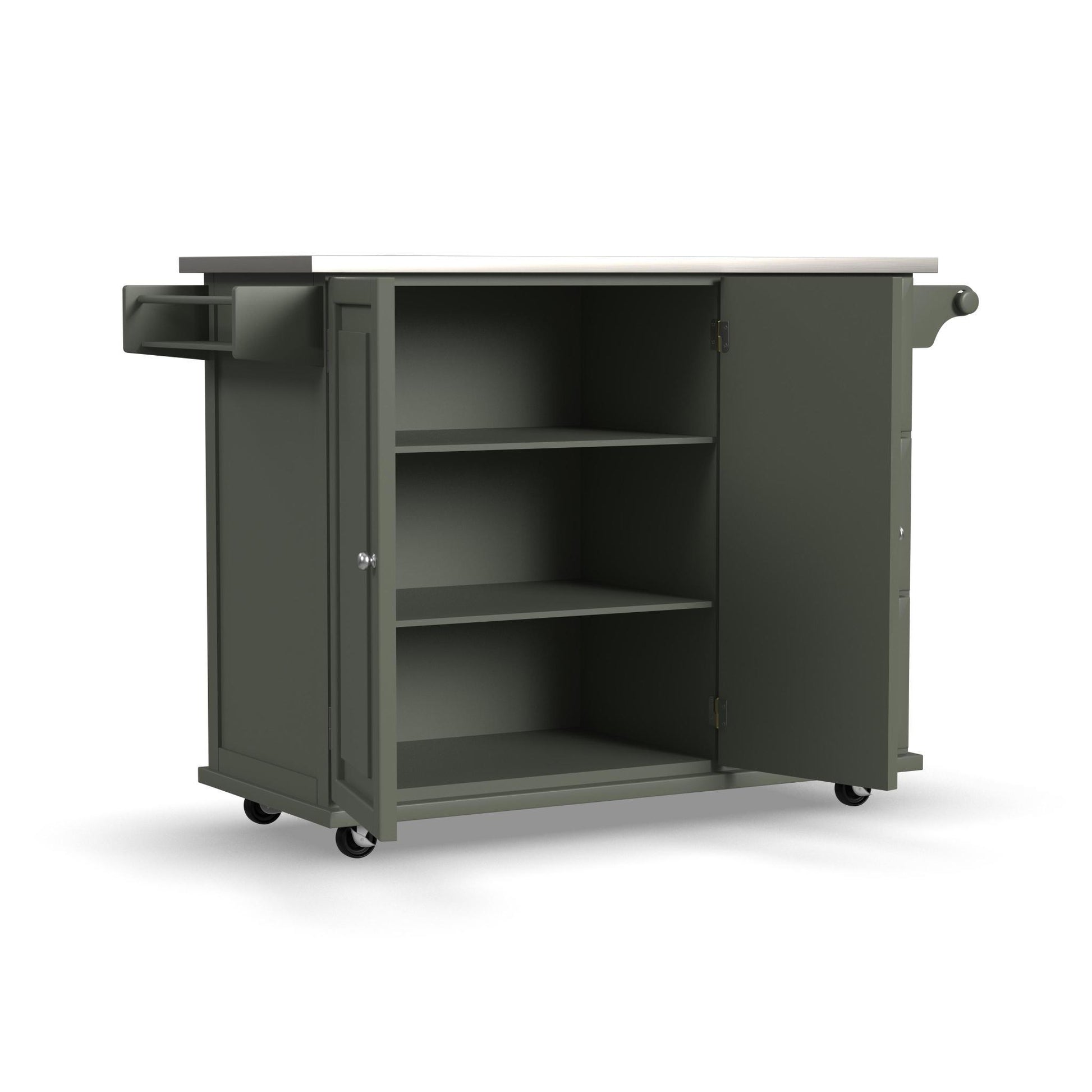 Maximize the storage space and work surface in your kitchen with this Dolly Madison Kitchen Cart by Homestyles. The stainless steel surface, durable engineered wood frame, which can be easily moved throughout your space on lockable casters to bring convenience right where it’s needed most. Loaded with space-saving features and storage options, it brings the ultimate in versatility and charm to your kitchen.