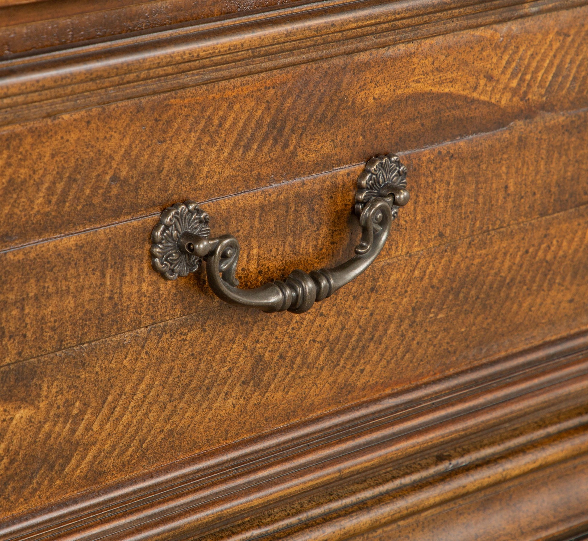 Traditional by nature and the handsome Durango bedroom collection imparts fresh allure to a classically inspired design aesthetic. Rooted in old world styling and these timeless silhouettes feature intricate carvings and fluted pilasters and ornate scrollwork insets. Antique Brass hardware gives the room a warm metallic element while providing the perfect complement to Durango’s gorgeous Willadeene Brown finish. If you're an admirer of traditional styling and this statement bed and coordinating storage pieces are a must-have.
