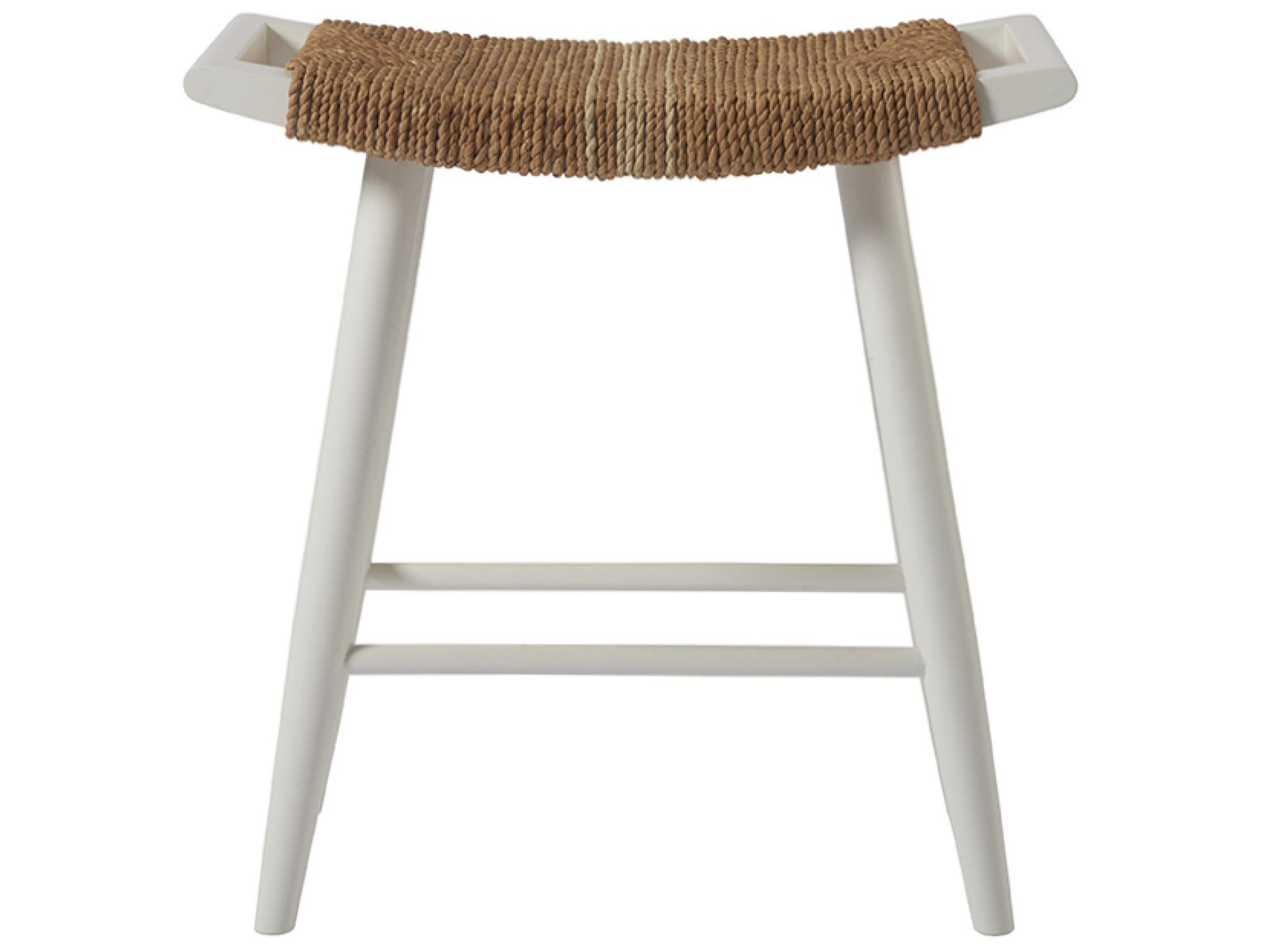 The Escape Counter Stool is designed with a white body and a neatly wrapped woven abaca seat, creating a breezy seating accent full of stylish appeal and function.