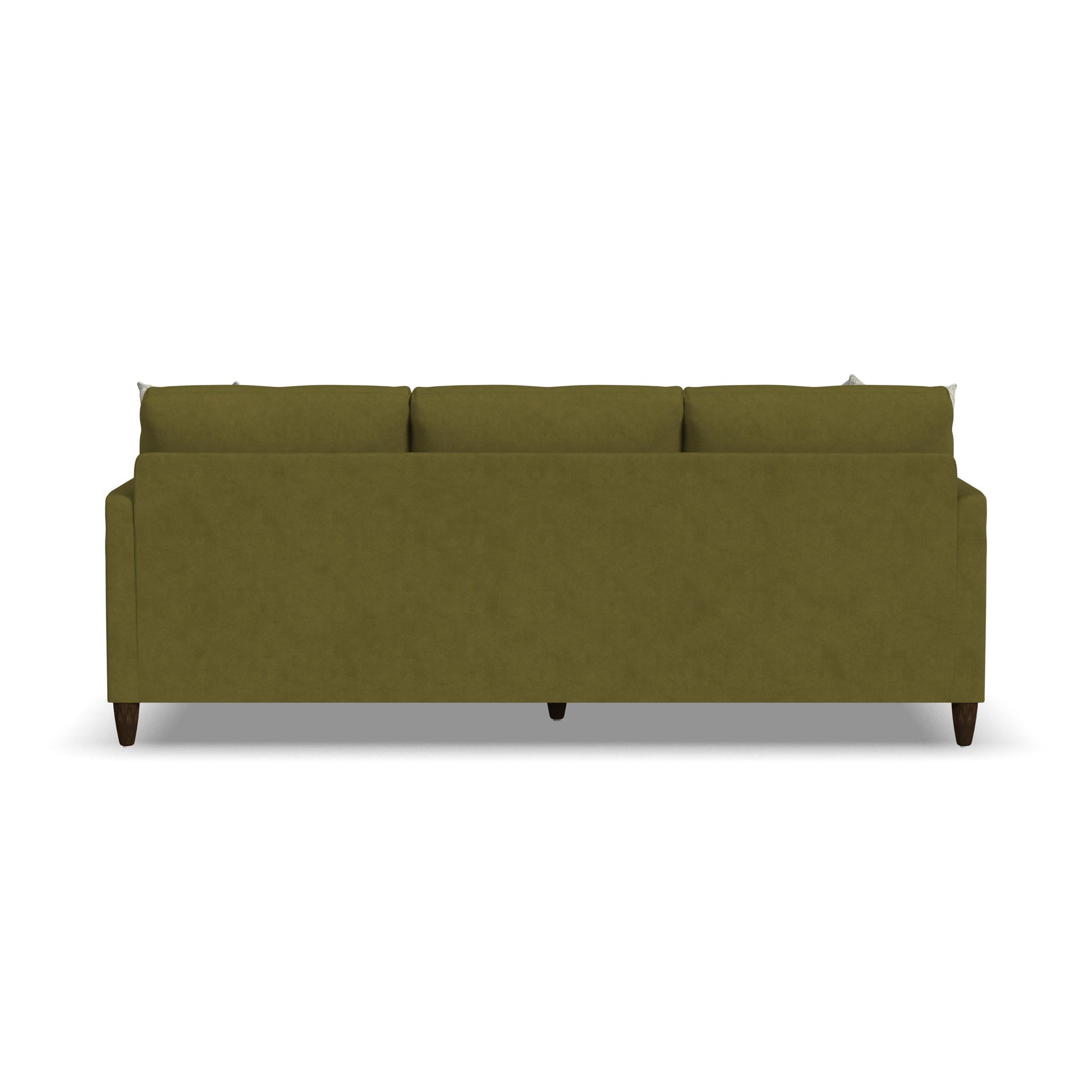 Clean lines and a cantilevered front make the Fern sofa a welcome addition to any home. With generous seating space from arm to arm, Fern provides plenty of roomy comfort for lounging, relaxing and entertaining. Round tapered legs positioned directly under the narrow track arms offer a distinctively modern architectural feel to spaces. Loose back cushions with a casual pleat design and the included knife-edge accent pillows complete the on-trend look of Fern.