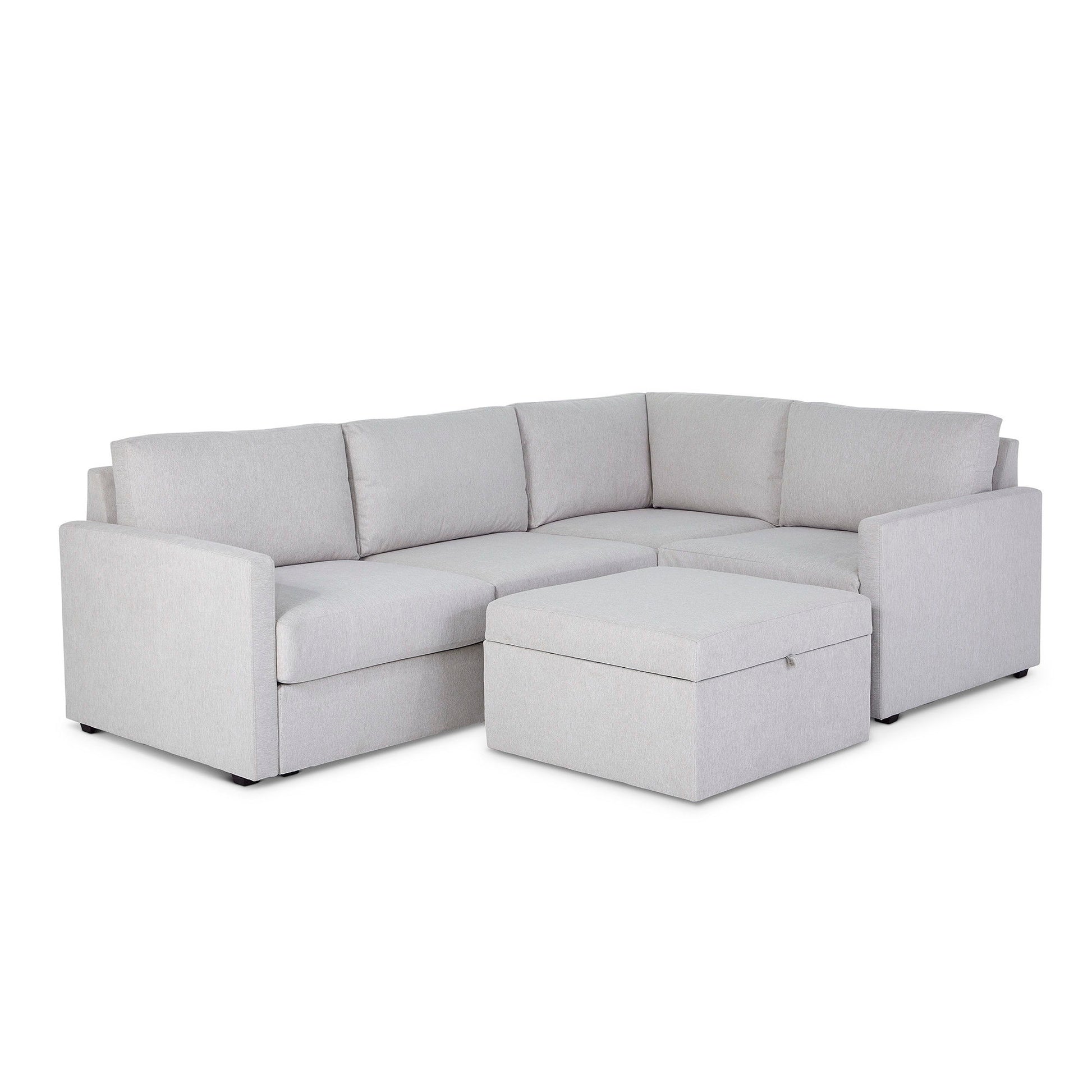 Flex - 4 Seat Sectional, Storage Ottoman - Pearl Silver