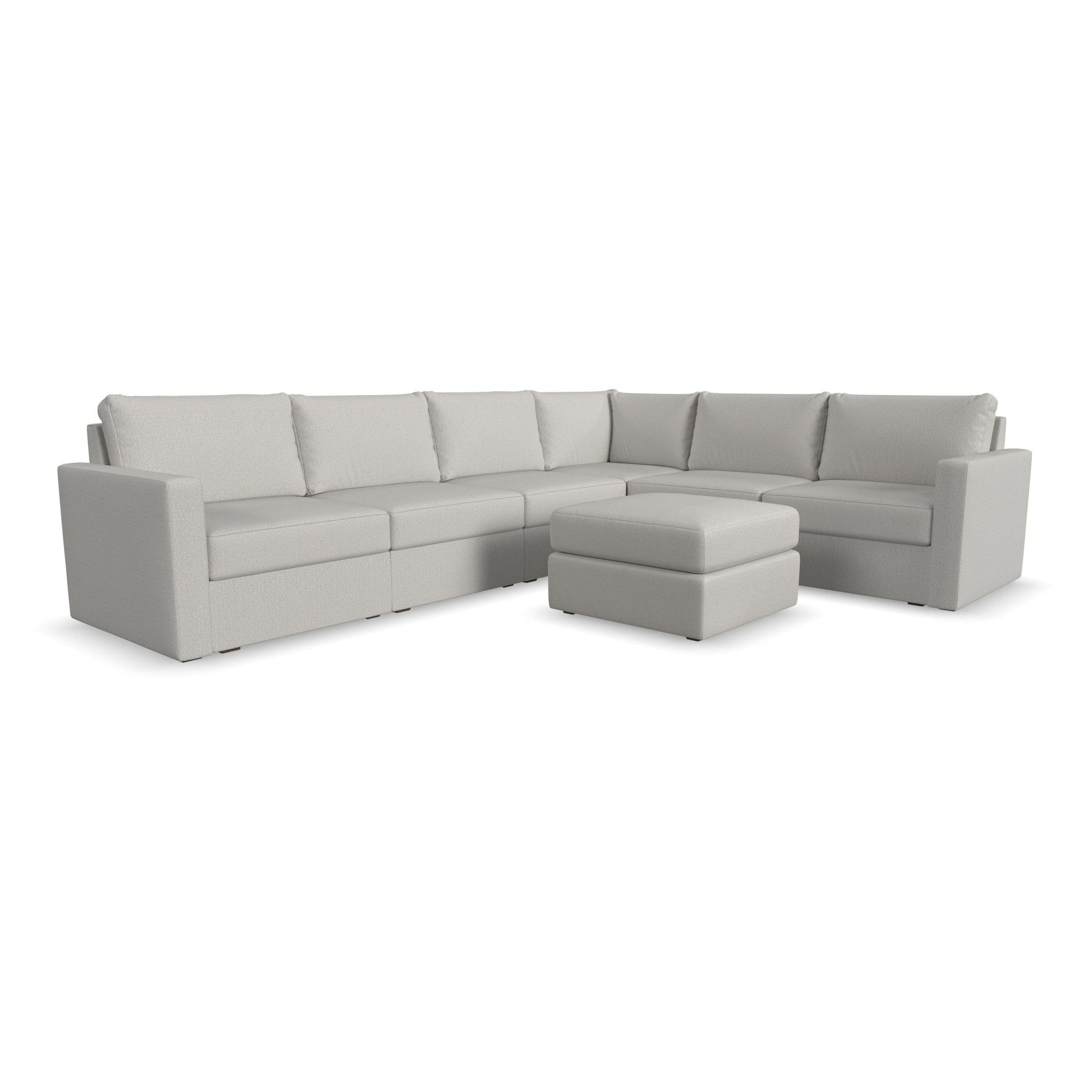 Designed for a lifetime of flexibility, the Flex sectional with ottoman can easily contract or expand as your needs change. Use the ottoman as a standalone piece or combine with other the other modular components to create the perfect seating configuration for your space. Built with Blue Steel Spring technology and sustainable, stain-resistant performance fabric, Flex seating provides deep-seated, blissful comfort and long-lasting livability. And assembly is a breeze with a patented J-bracket “no-tool” method that takes minutes, rather than hours.