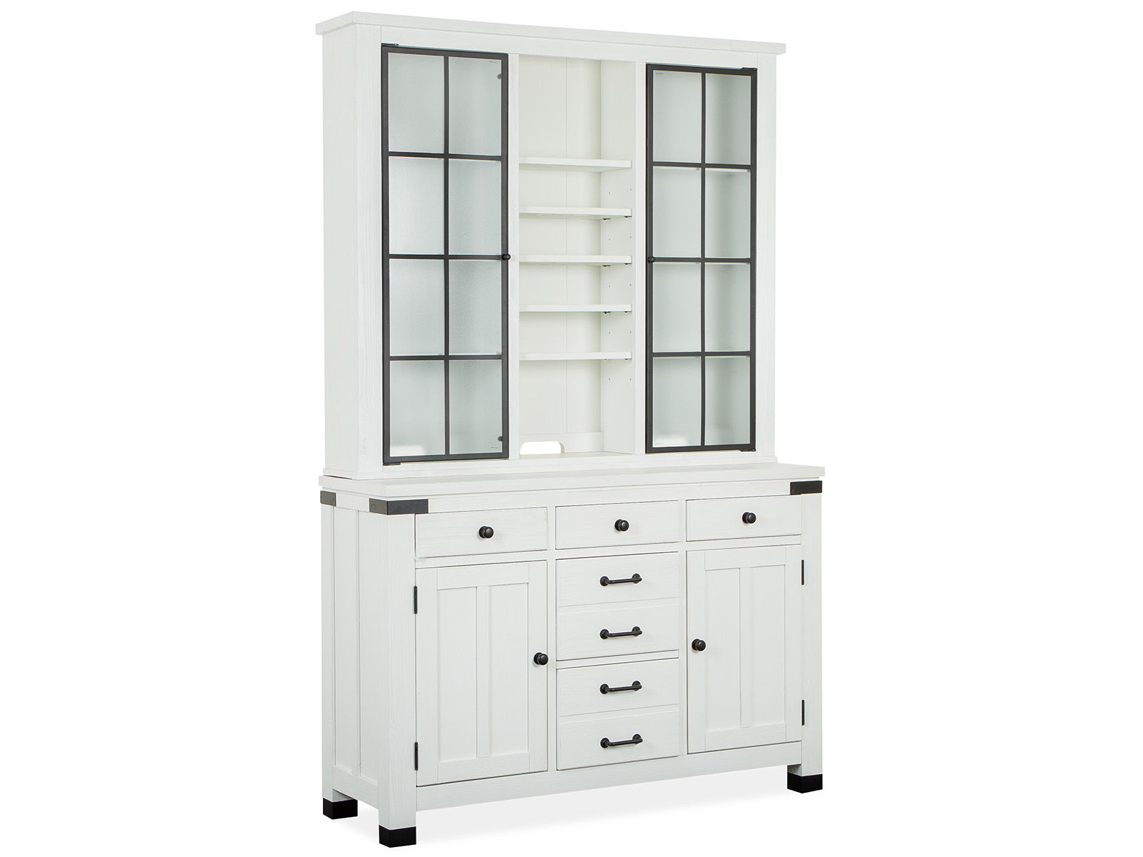Farmhouse fresh meets industrial chic in the Harper Springs Collection. The board-and-batten construction evokes architectural details from the 19th and 20th century farmhouses, and window-pane motifs in textured glass on key pieces are inspired by the black metal windows of classic farmhouses and reclaimed factories. Black metal ferrules, corner brackets and forged iron hardware bring an industrial modern vibe to the craftsmen-like silhouettes. Harper Springs offers an authentic and casual feel. Whether you aspire to loft living or country living, the Harper Springs Collection will bring you dream home to life.
