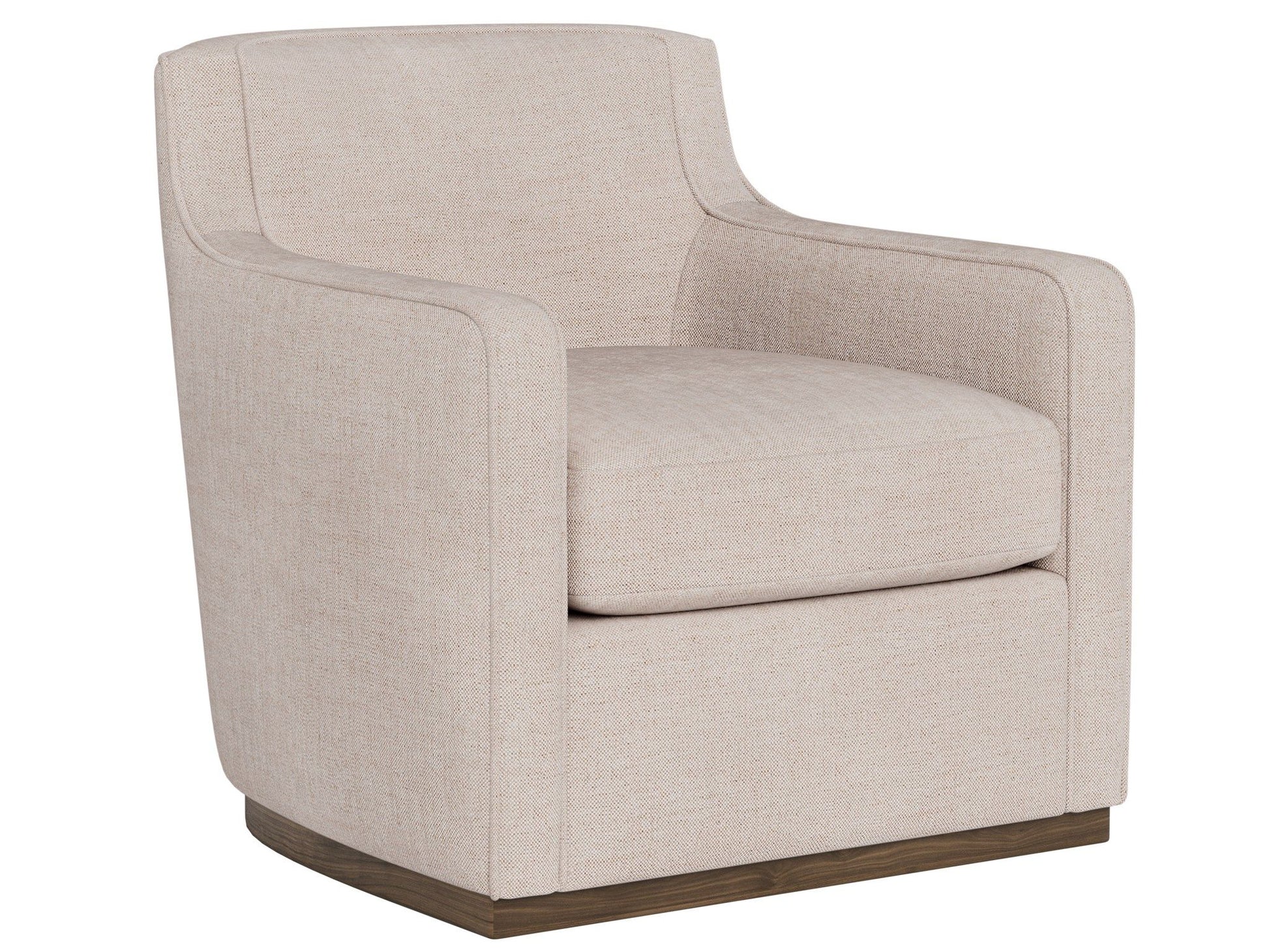 A gently curved chair back and sloped arms reflects a timeless classicism.
