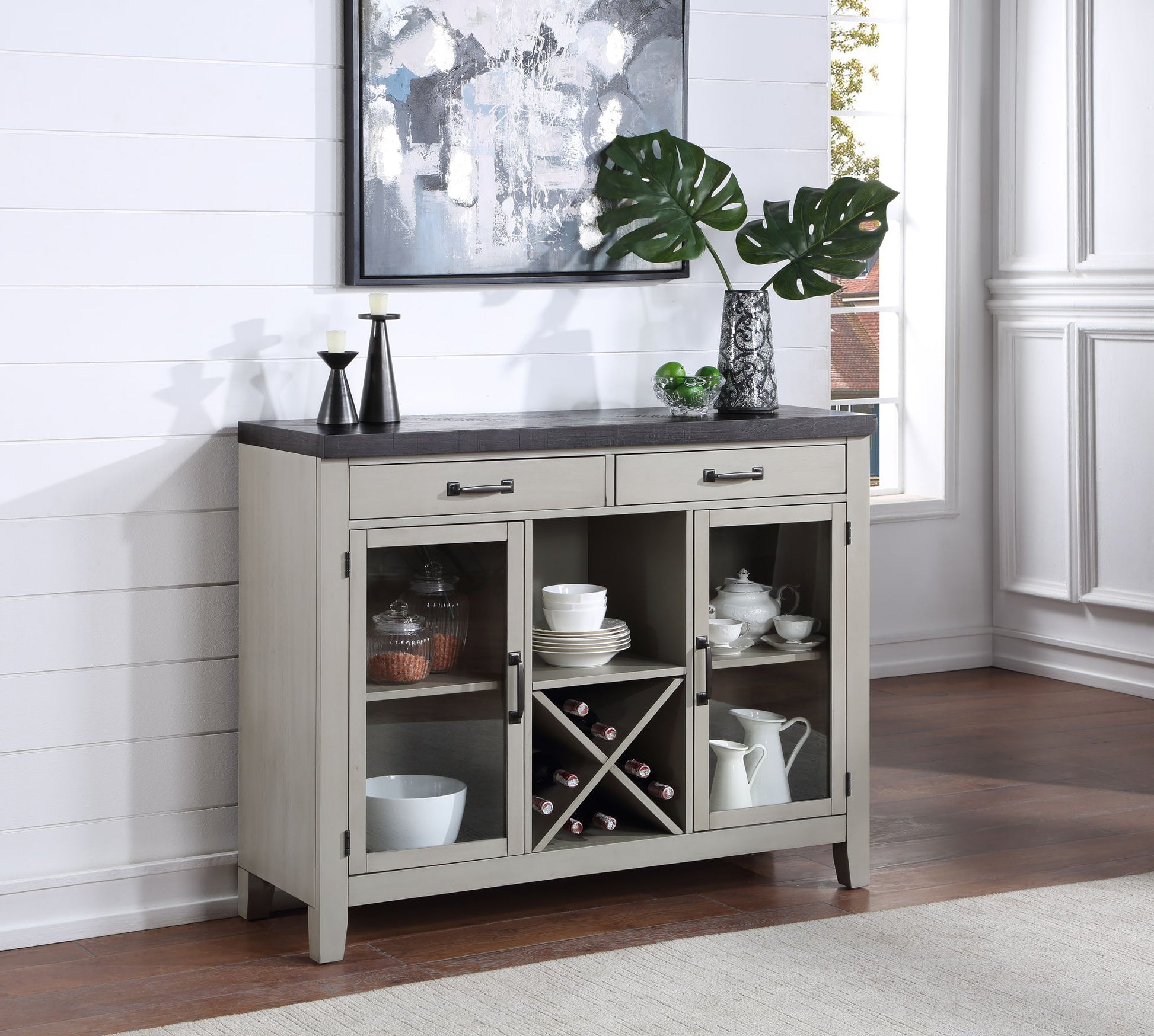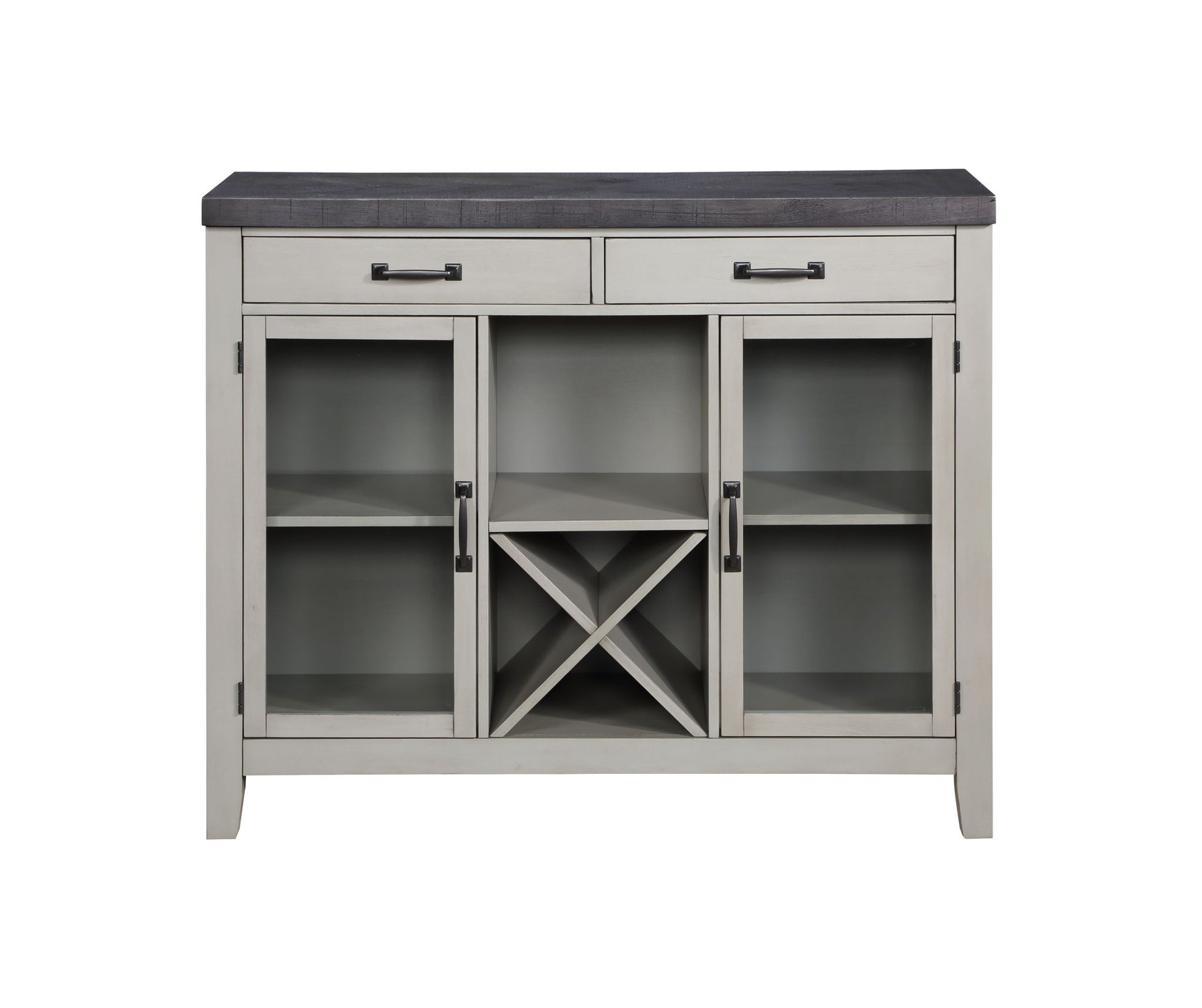 Instant storage and design come together in the Hyland Server. A two-tone Milk and Honey finish add a neutral touch to any room while offering generous storage and display area. Great for assisting in the dining area, this piece also works well as a TV Stand or Media Center with glass doors for remote control access. Adjustable shelves ensure a secure fit for plates or electronics. Removable wine rack offers excellent bottle storage or an open compartment when removed.