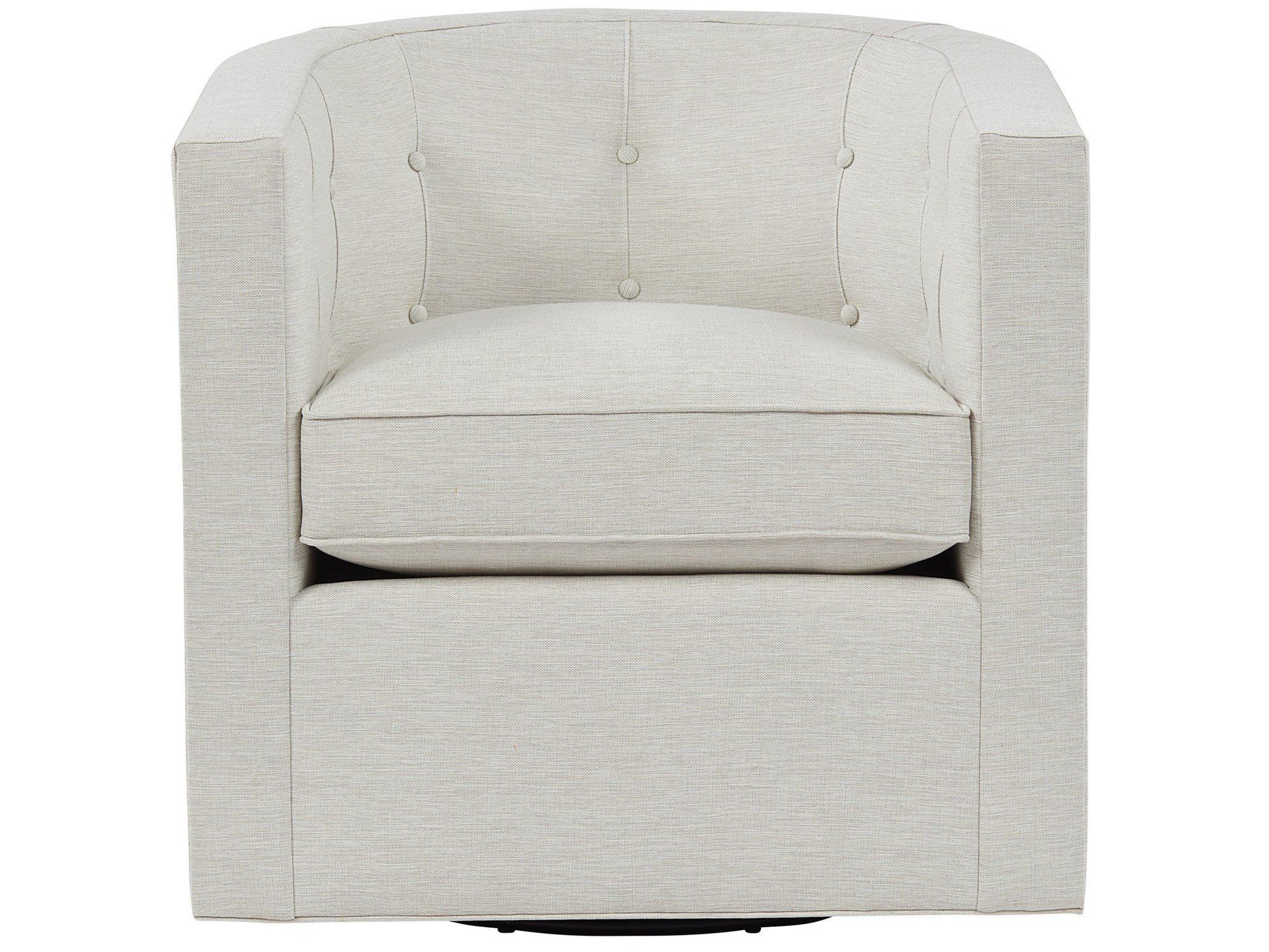 Shown with the swivel option, the Josie Chair is crafted with a curved, barrel-shaped silhouette with subtle button tufting.