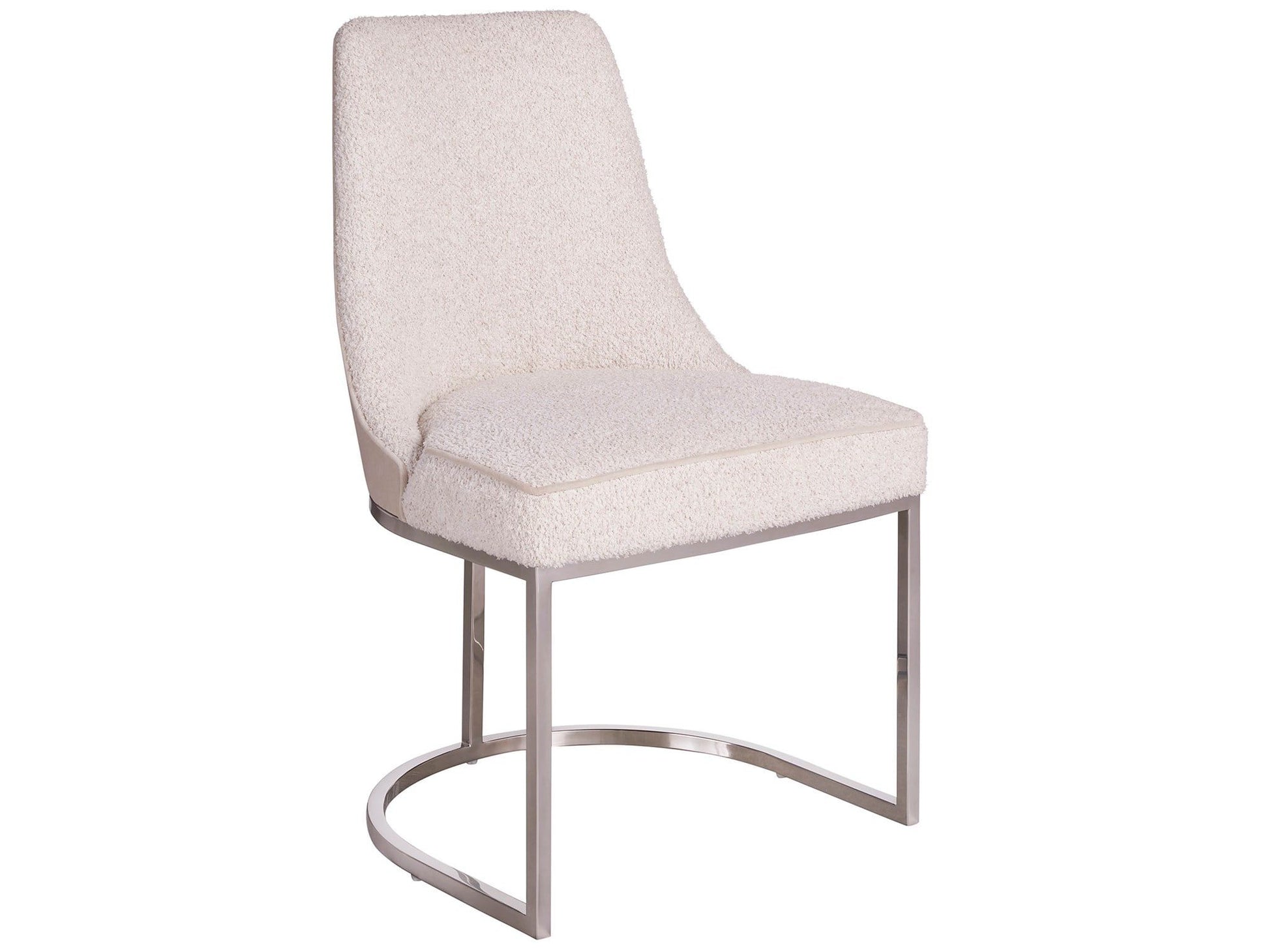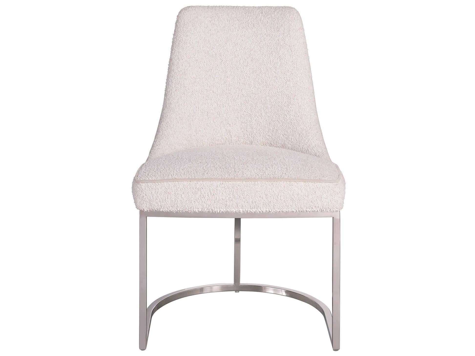 Elevate your dining space with the Kamden Dining Chair. Influenced by graceful curvature and playful lines, this chair features a half-moon base metal finish, adding a touch of contemporary elegance to your décor.
