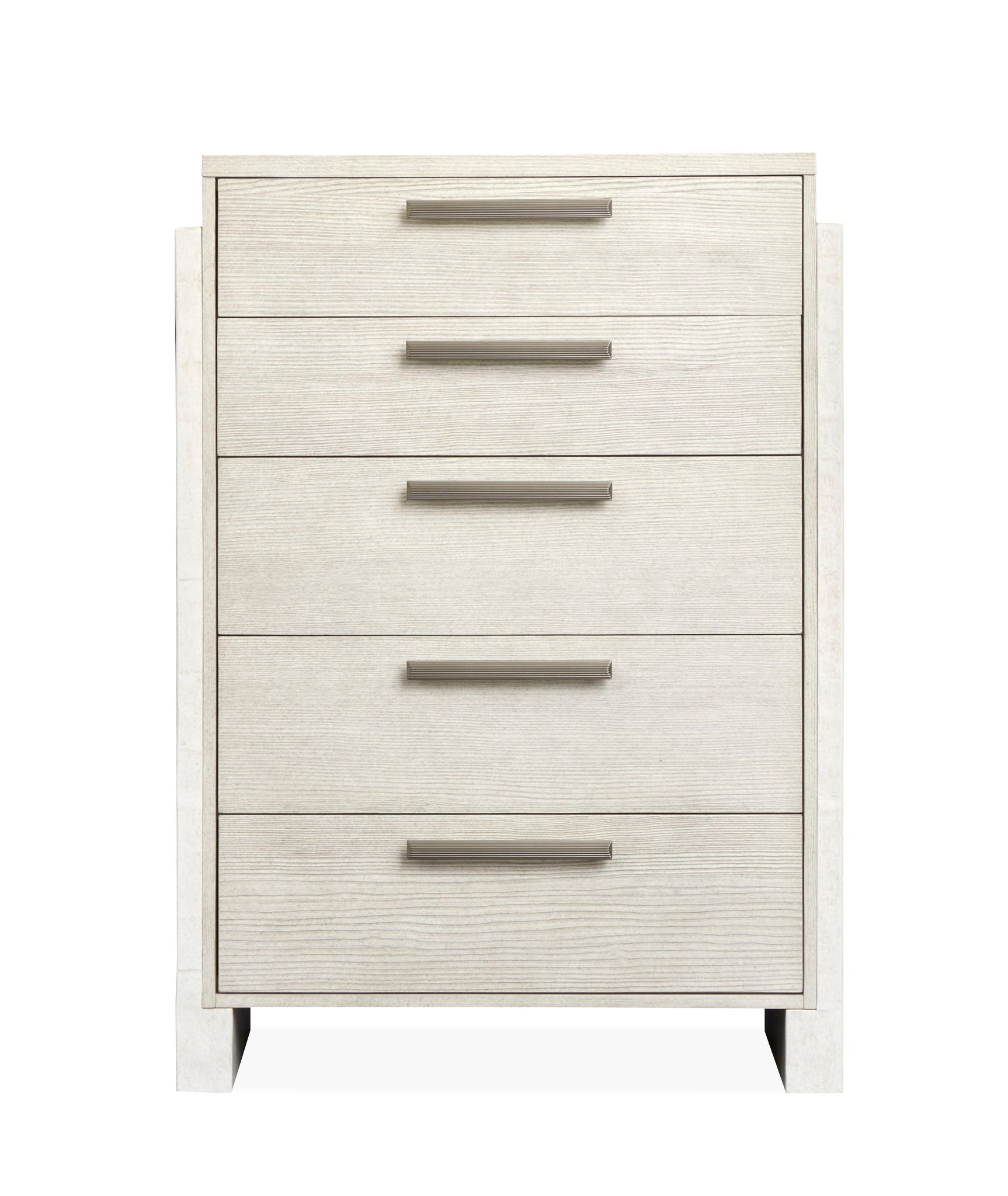 The Lorelei is the perfect addition to any modern contemporary home. With sleek resin end panels and it combines durability with striking visual appeal. The Misty Cloud finish and heavy wire-brushed quarter pine veneer and and embossed MDF are paired with resin and satin bucket hardware for a sophisticated look. Its contemporary design effortlessly enhances modern interiors and adding a fresh and stylish touch. Made from high-quality hardwood solids and durable materials and the Lorelei promises lasting beauty and functionality.