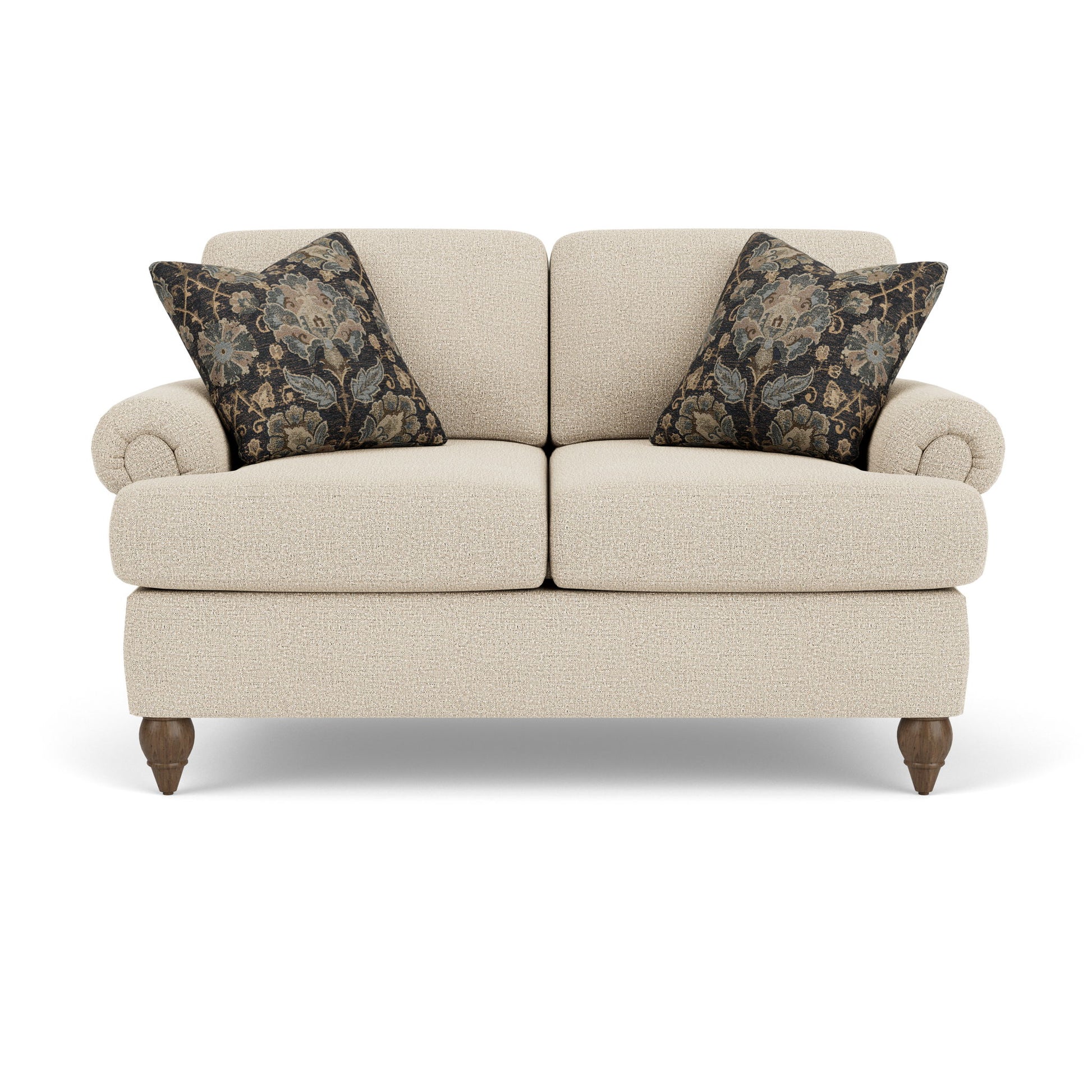 Cozy up with a loved one or claim it all for yourself with the Moxy loveseat that lets you personalize details for the perfect look and feel. Formal panel roll arms sit on round turned legs that are available in a choice of three distinct wood finishes—Florentine, Valencia, or Urban Renewal—to complement any décor. The removable T-shaped seat cushions offer a distinctive look and added comfort. Sink into the ideal level of support with your choice of our luxury or plush cushions. Complete the look and showcase your lifestyle with hundreds of different fabric choices, including high-performance and sustainable textiles. Superior frame construction and our patented C-Flex Blue Steel Spring™ ensures your Moxy can be enjoyed for years to come.