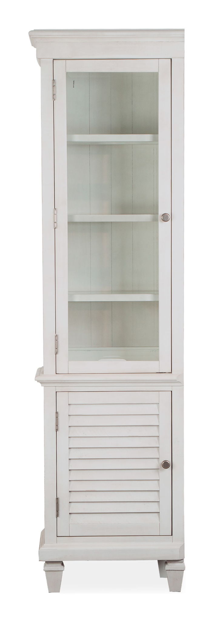 - 3 Adjustable Wood Framed Tempered Glass Shelves Behind Top Door
