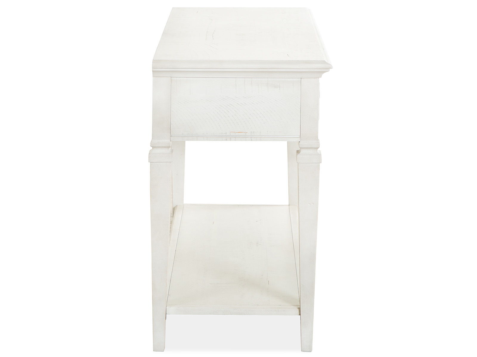 Perfect for updated traditional spaces, the Newport collection brings a breath of fresh style to any room. Classic molding details, tapered legs and shutter-inspired elements add visual interest while Brushed Pewter hardware lends an element of fashion. Pretty yet practical, these impressive tables provide a stylish storage solution.