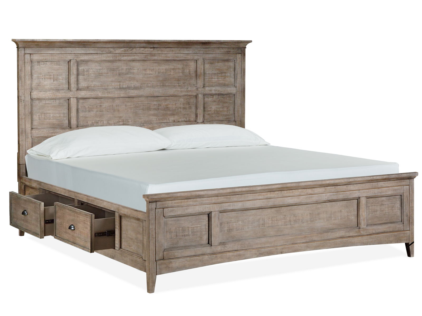 Paxton Place - Complete King Panel Bed With Storage Rails - Dove Tail Grey