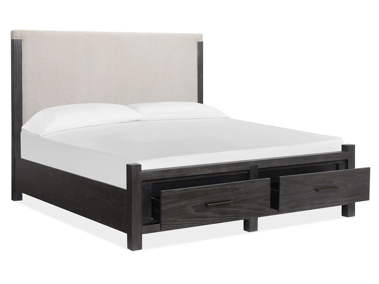 Plum Creek - King Upholstered Panel Storage Bed - Ravenwood Black