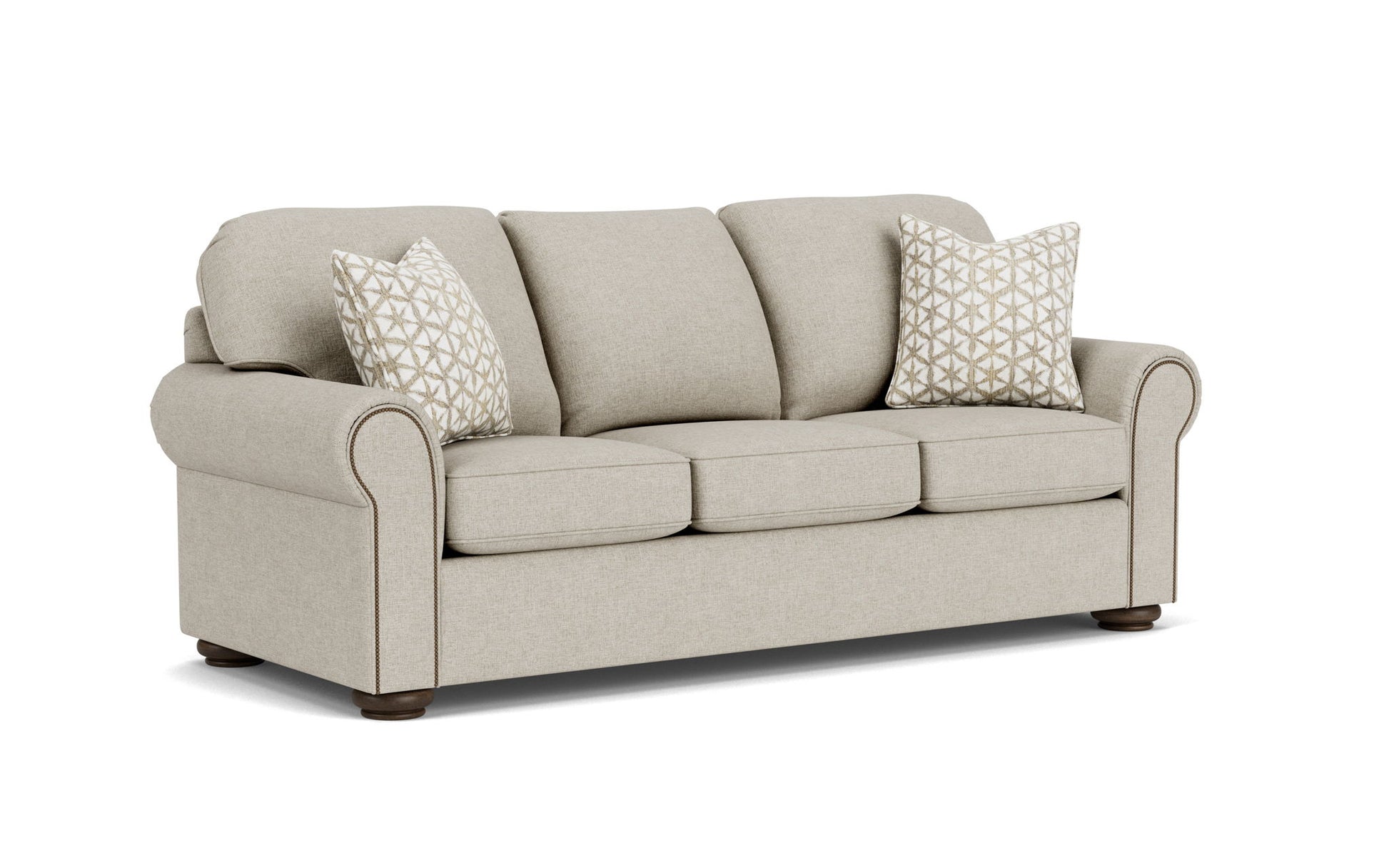 Smooth edges, oversized rolled arms, and exposed round bun feet give Preston classic appeal as a living-area staple. This sofa features welt cording trim on the back and seat cushions with nailhead trim for an elegant touch. Backed by lifetime guarantees, the style and comfort of Preston will be enjoyed for years to come.