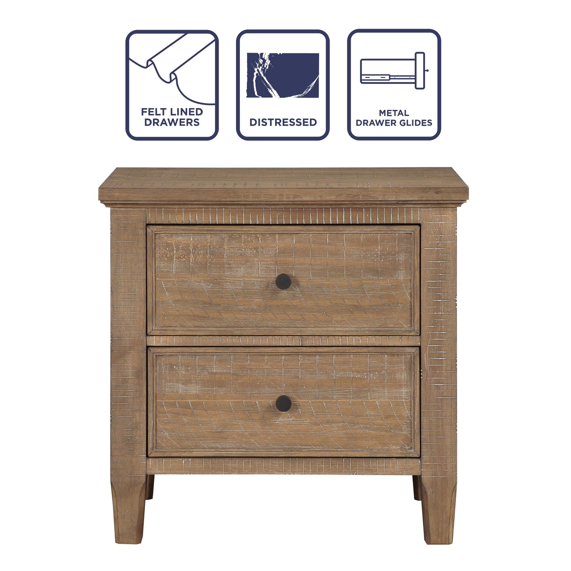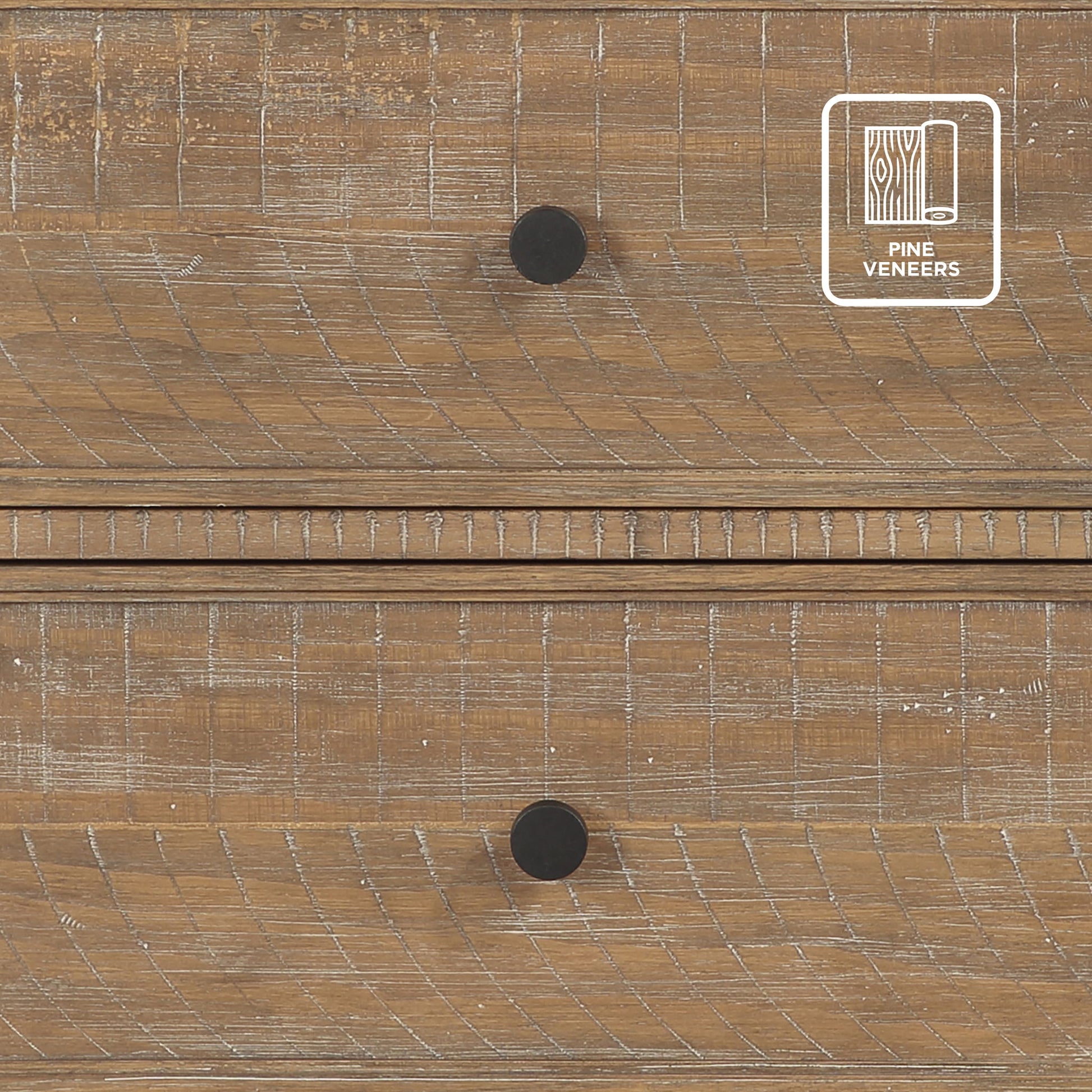 Introduce rustic sophisticaton to your bedroom with the Riverdale 2-Drawer Nightstand. Expertly crafted from pine and other woods, this piece exudes warmth and comfort. The distressing adds character and an heirloom touch, while the metal side drawer glides provide ample storage space for all your essentials. Keep your bedside organized with the Modern Ranch 2-Drawer Nightstand, a perfect complement to any cozy and inviting bedroom déco, this piece also can be used as an End Table..