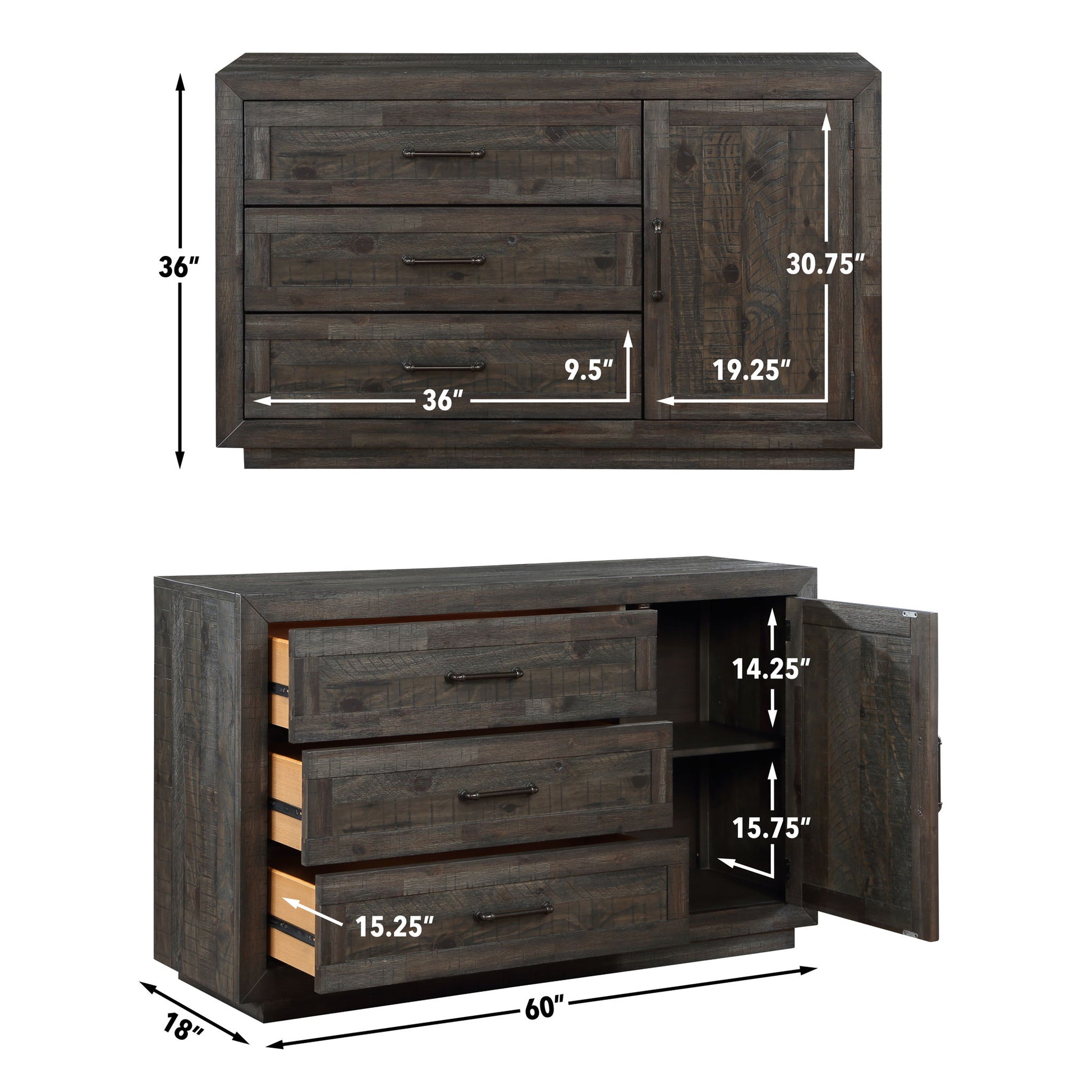 The Riverdale Black Server, with its rich distressed pine and subtle black finish, whispers tales of rustic elegance. Three deep drawers and a secretive door hint at memories yet to be made, while effortlessly cradling dining essentials. It's not merely storage but a dance of history and future, embodying the beauty and simplicity woven within deep narratives. In the ballet of casual dining, it stands as a poignant principal, quietly commanding attention.