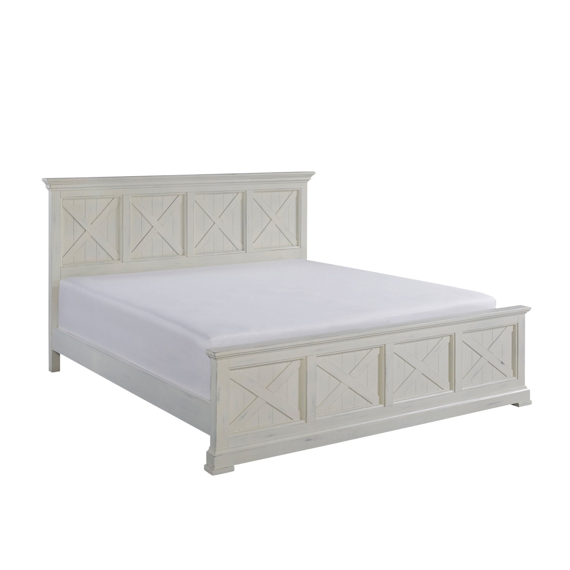 Whether outfitting the master bedroom or making a guest room feel like a guest suite, nothing finishes a room like this Homestyles Seaside Lodge King Bed Frame. Fully finished from the headboard to the footboard, it the off-white finish brings a coastal feel into any bedroom. It fits any standard king mattress, and supports it with European style slats.