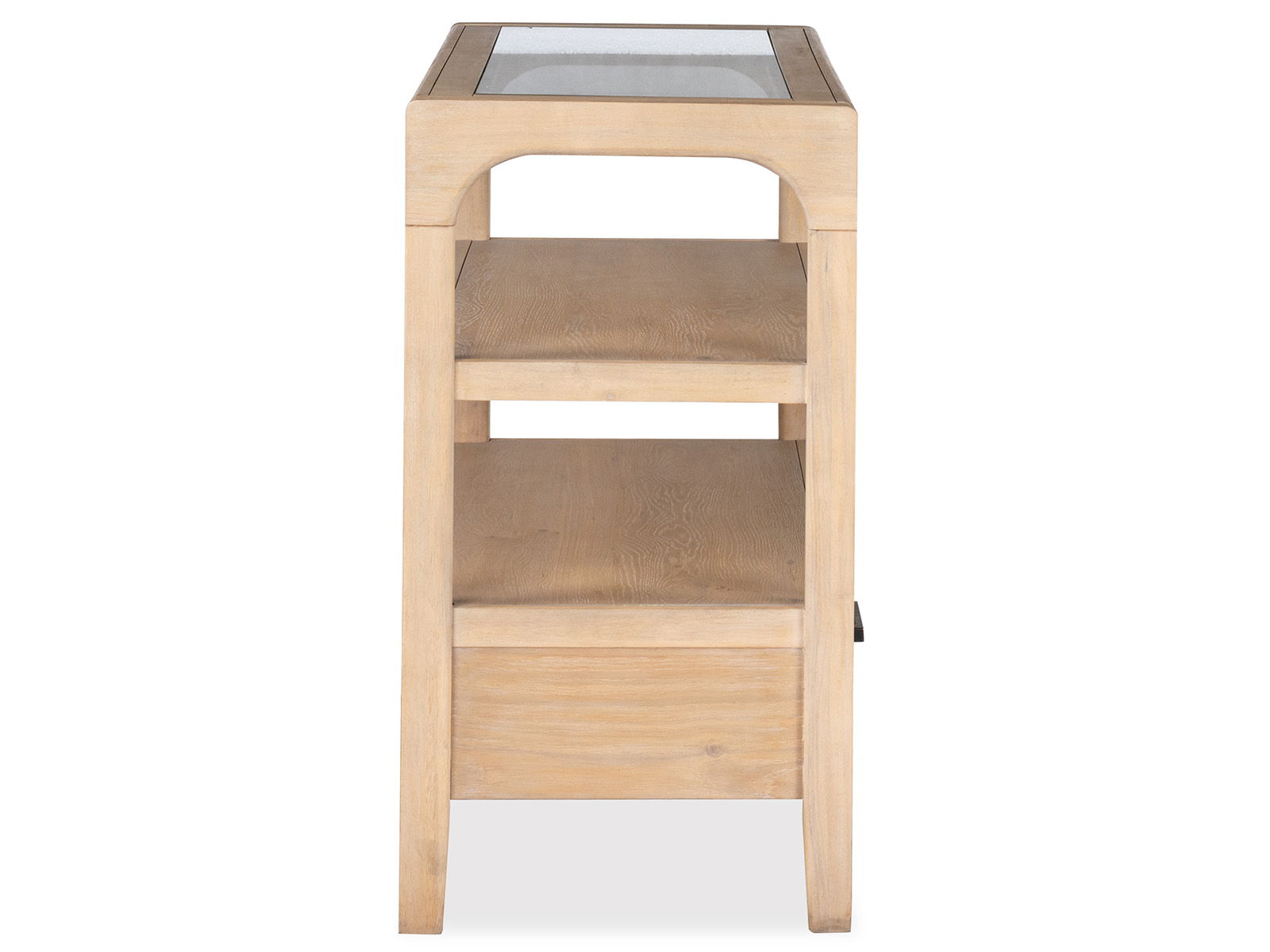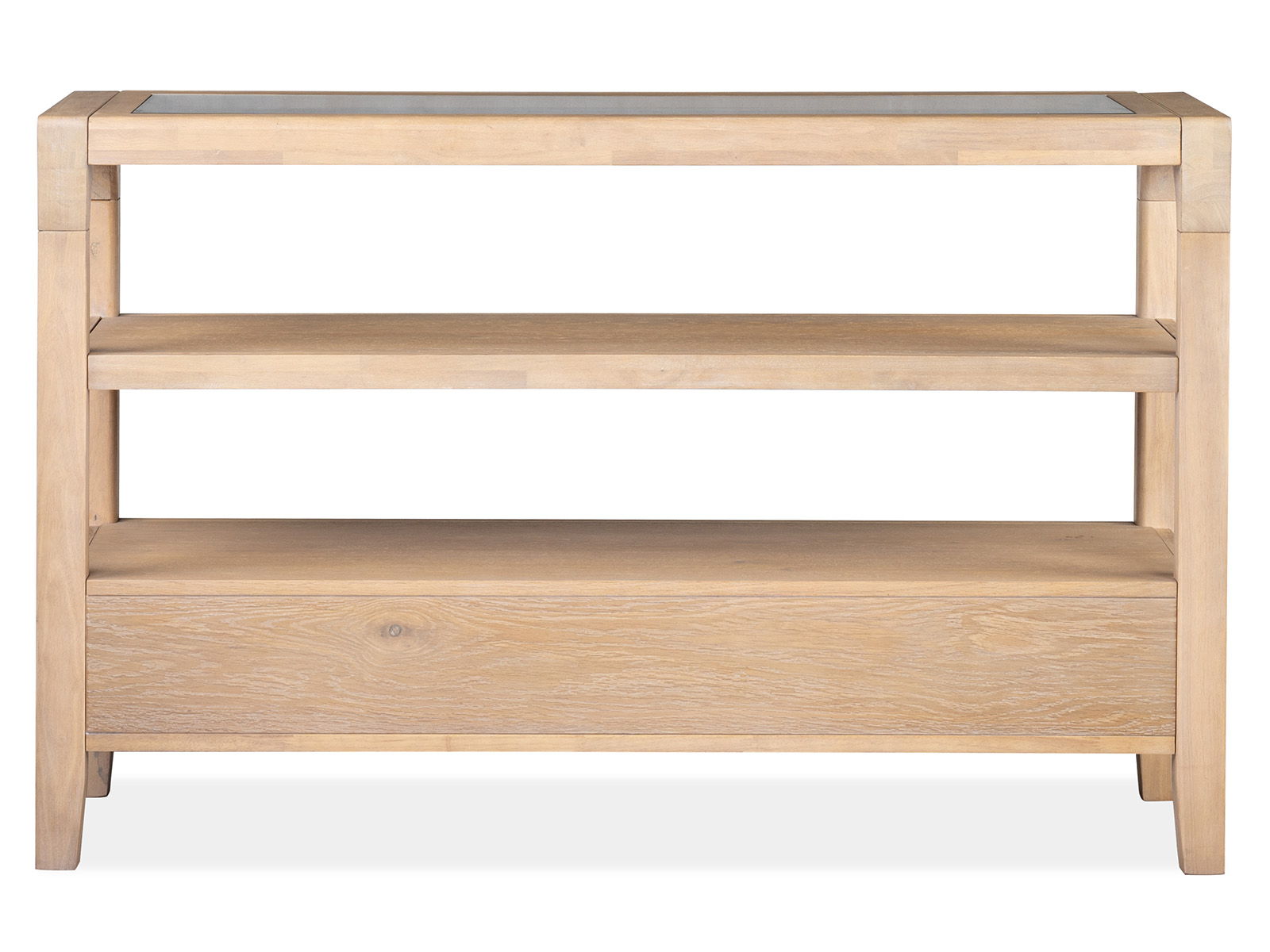 The Somerset dining collection represents the essence of effortless elegance. Its soft curves and rounded angles are easy on the eyes while open shelves and cutouts lend a feeling of lightness and youthfulness. Finished in a soft shade of Butternut that accentuates its knotty white oak veneer patterns and these soothing designs feel modern yet timeless. Bold graphite hardware provides contrast to the relaxed finish and adds another layer of visual interest to the case pieces. Coordinating chairs are upholstered in an Omari Natural fabric for ultimate decorating flexibility. For family dinners or entertaining friends and Somerset dining options offer the ultimate combination of beauty and function.