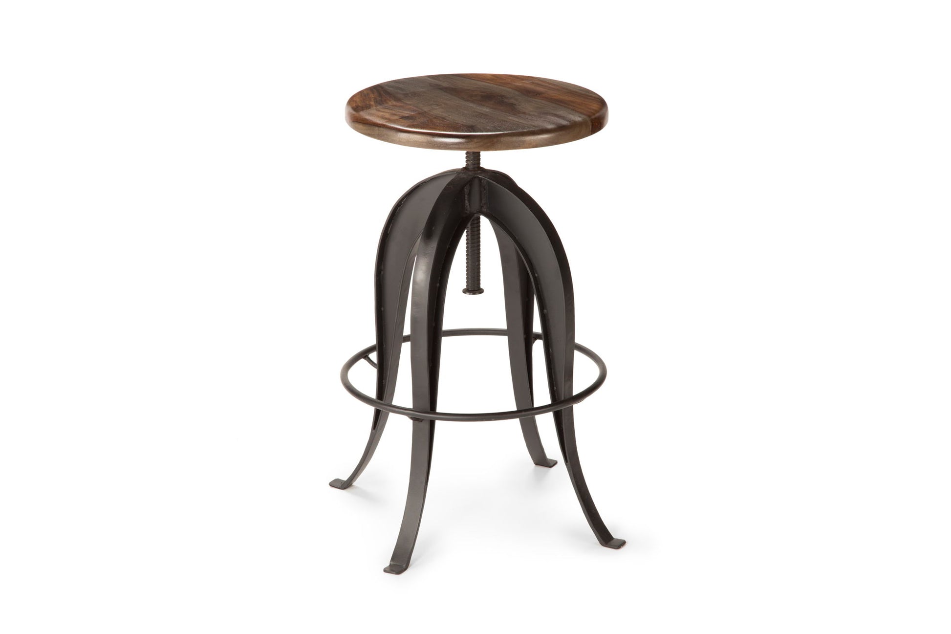 - Solid wood seat top Metal quad style frame Smooth crank mechanism for ease of adjustment from 24 to 36 inch height to fit 36 or 42 inch high Counters Armless, backless traditional stool style