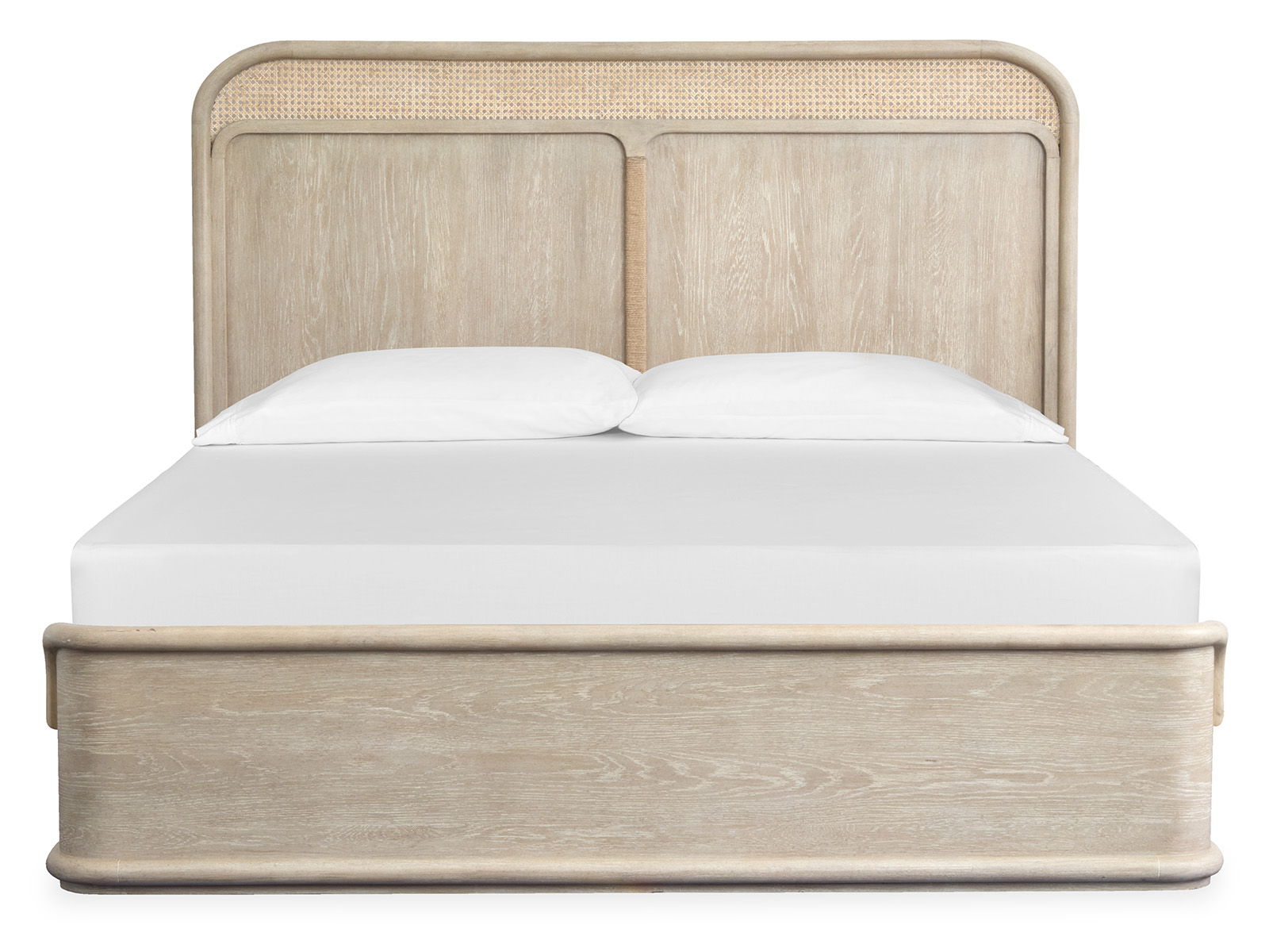 Design your ultimate bedroom retreat with the fresh and easy going character of the Sunset Cove bedroom collection. Simplified shapes and rounded forms and softly curving corners define the character of these captivating designs. Each piece is expertly crafted of Cathedral White Oak veneer with hardwood solids and finished in a light and natural shade of Sanibel Brown accented with Dark Bronze hardware. Start with one of its statement-making beds to create a focal point and then choose your favorite storage pieces. With understated elegance and the group offers smart storage options distinguished by features such as paper cord-wrapped decorative accents and open and closed storage and and metal accents. An honest and straightforward expression of good design and Sunset Cove is hard to surpass.