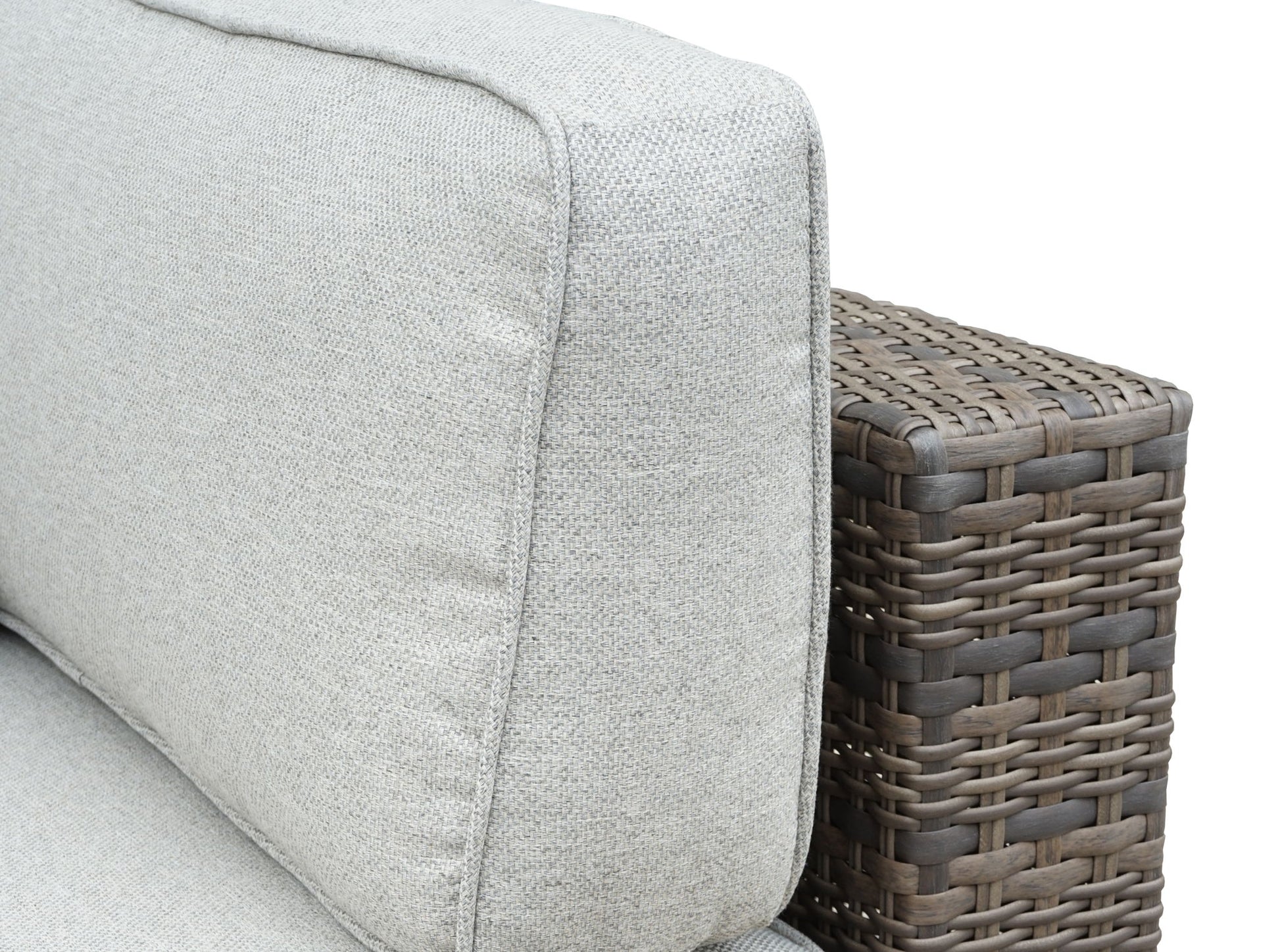Sit a large crowd outside with the weather- resistant Tamyra sectional! Resin wicker and solution-dyed fabric covers are stain and fade resistant and built for the outdoors but with the comfort you expect from regular upholstery. 6-inch cushions are ultra-comfortable and removable for when the weather gets bad. The Corner Table features a removable glass top with an umbrella hole and a door on the back for storage. Upholstery with indoor looks but built so you can enjoy the great outdoors!