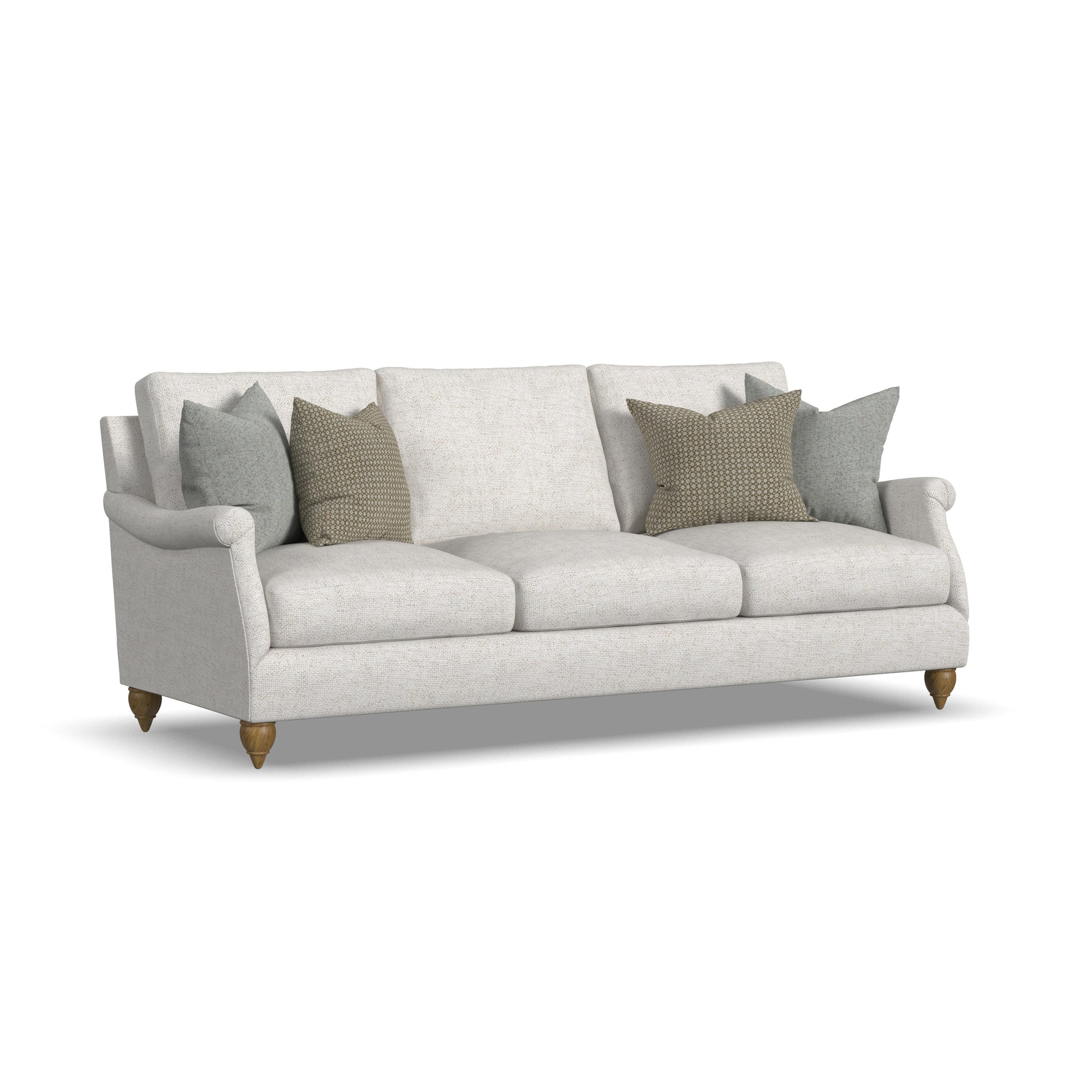 Traditional elegance gets a fresh reinterpretation with the Veda sofa. The petite, pleated roll arms slope down onto stately legs, delivering timeless details and graceful curves that soften the room while adding an abundance of charm. Generous seat space, cushion fill choices, and the Blue Steel Spring at the heart of each seat ensure lasting comfort. And bring your room together with four accent pillows, orderable in your choice of fabric.
