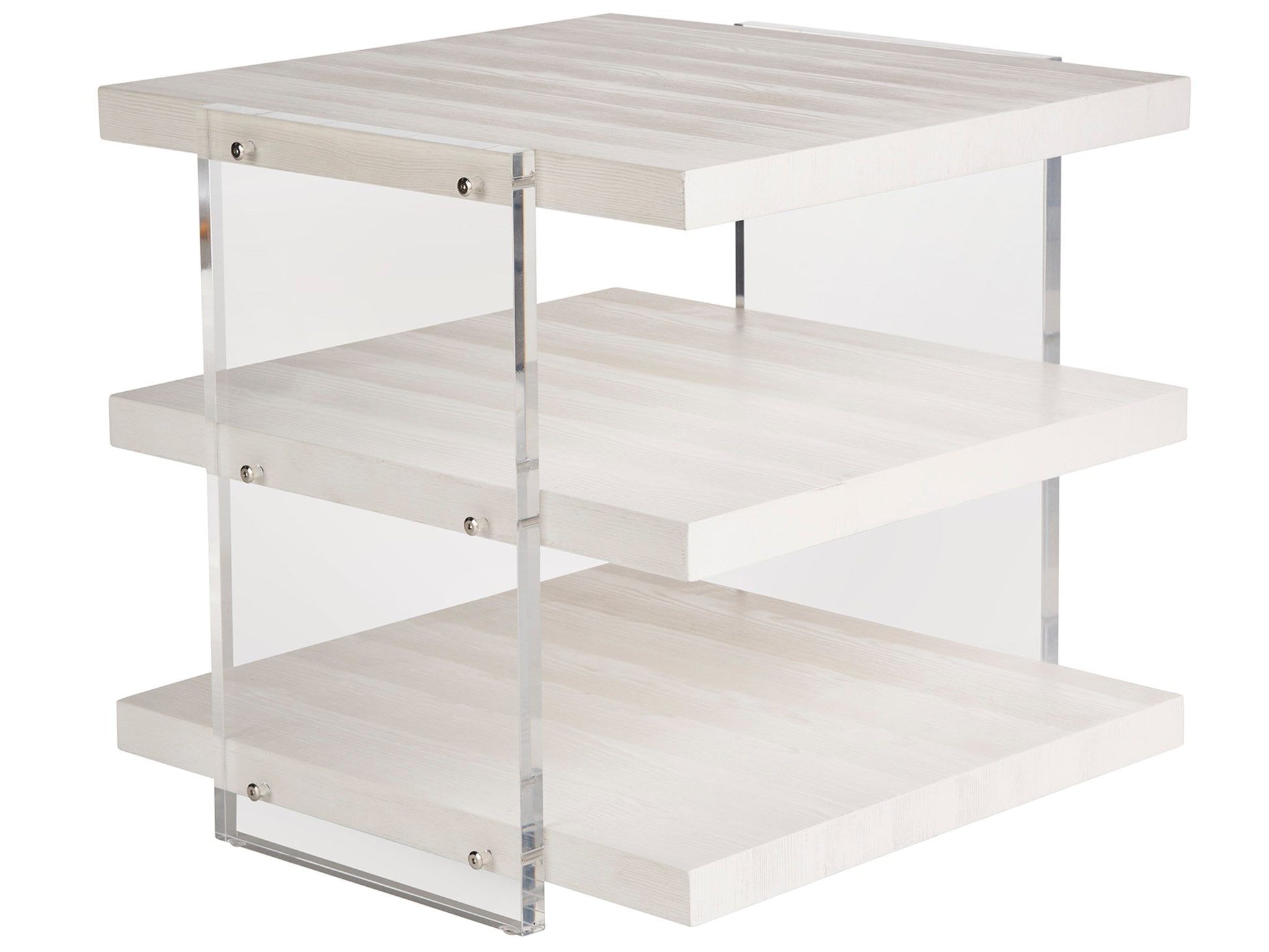 Exuding a forward-thinking appeal, the slender St. Kitts End Table provides the perfect sofa or chair companion with its acrylic legs and sand-hued surfaces.