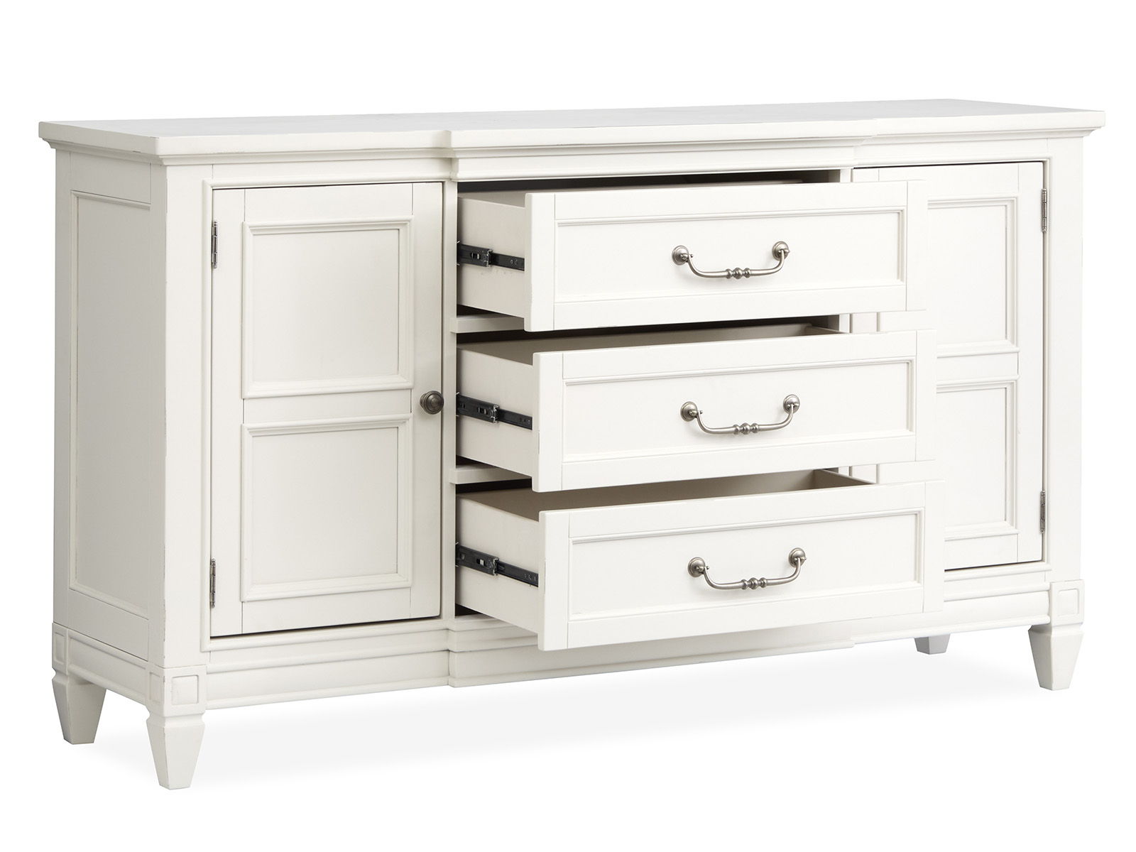 Charming and chic and Willowbrook transforms your dining space into a serene retreat with its soft and casual Egg Shell White finish and classic forms. Crafted of Birch Veneer and Hardwood Solids with a subtle gray wash over the creamy finish and Willowbrook fits seamlessly into styles ranging from cottage to coastal and traditional to soft modern. The collection features a stunning dining table with elegant legs and a choice of side chairs or upholstered back for added sophistication. The dining storage pieces include a buffet with ample drawers and a display cabinet and perfect for showcasing your finest china or everyday essentials. From intimate dinners to festive gatherings and Willowbrook creates an inviting dining atmosphere that feels like a destination in itself.